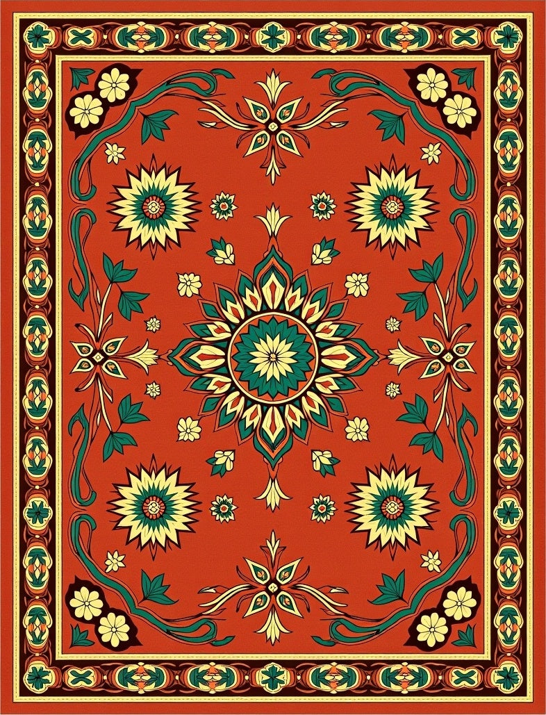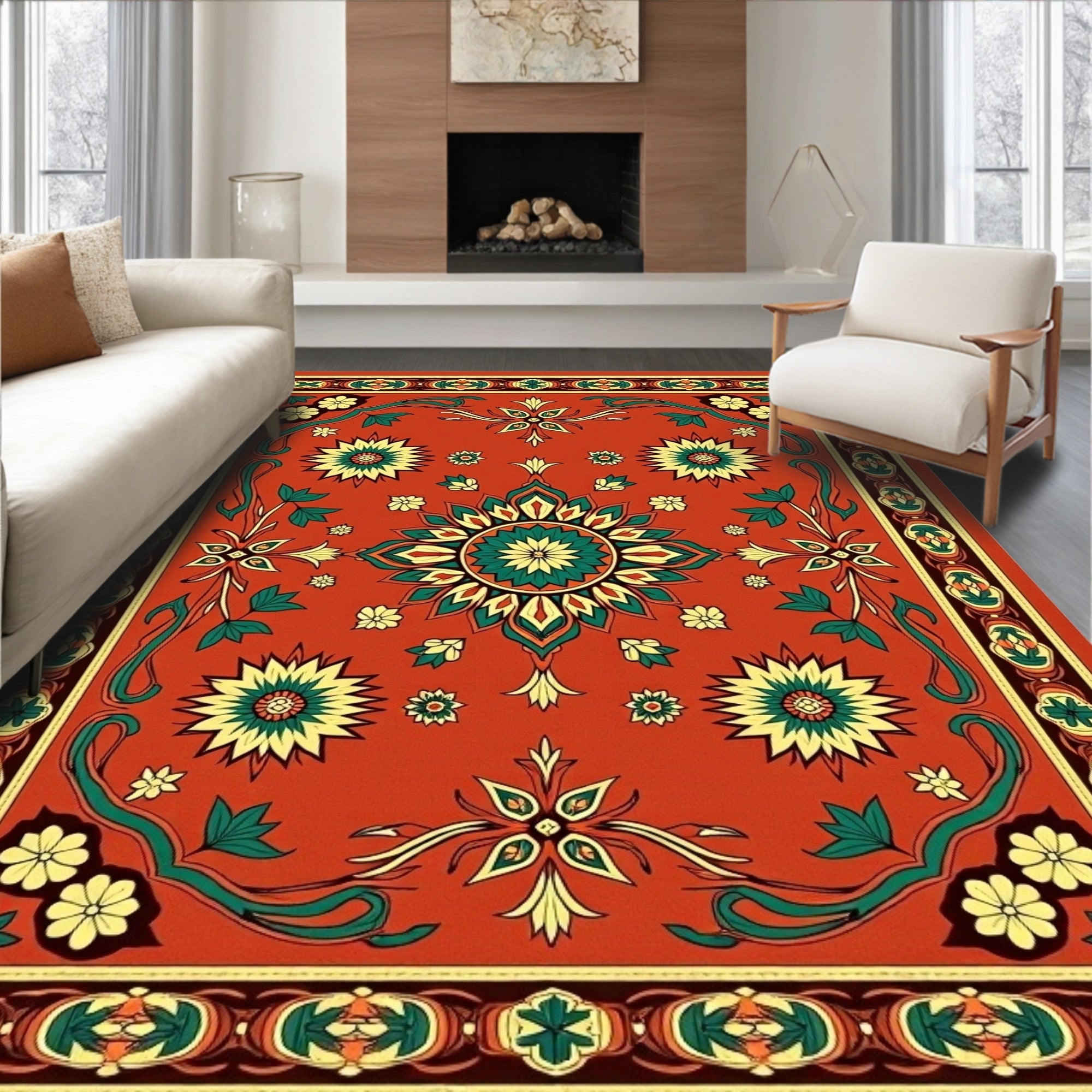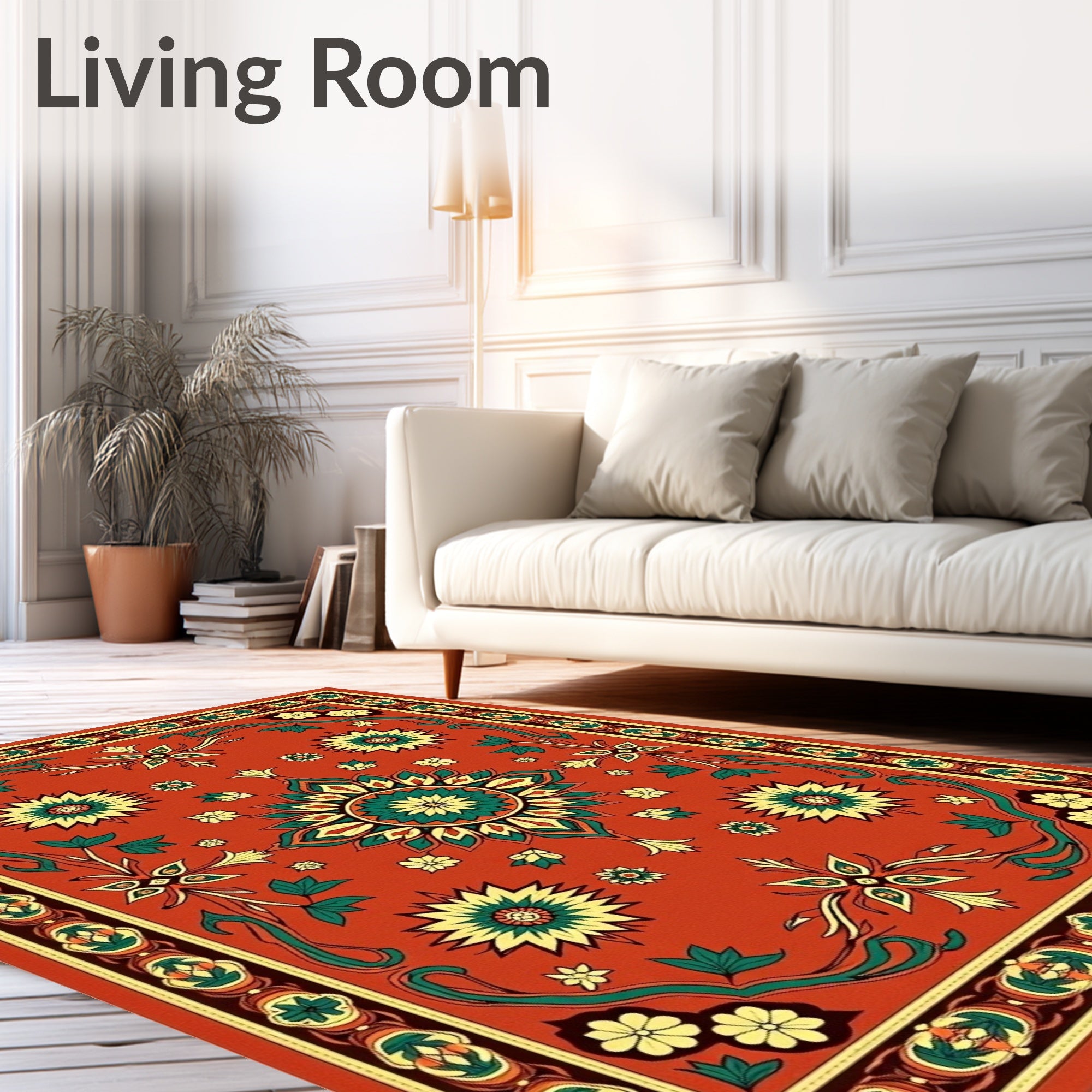 Ultra Soft Area Rug, Non Slip, Stain Resistant, Washable Area Rugs for Living Room, Bedroom, Autumn Harvest Floral Medallion Vine Tapestry(Red) Overview: