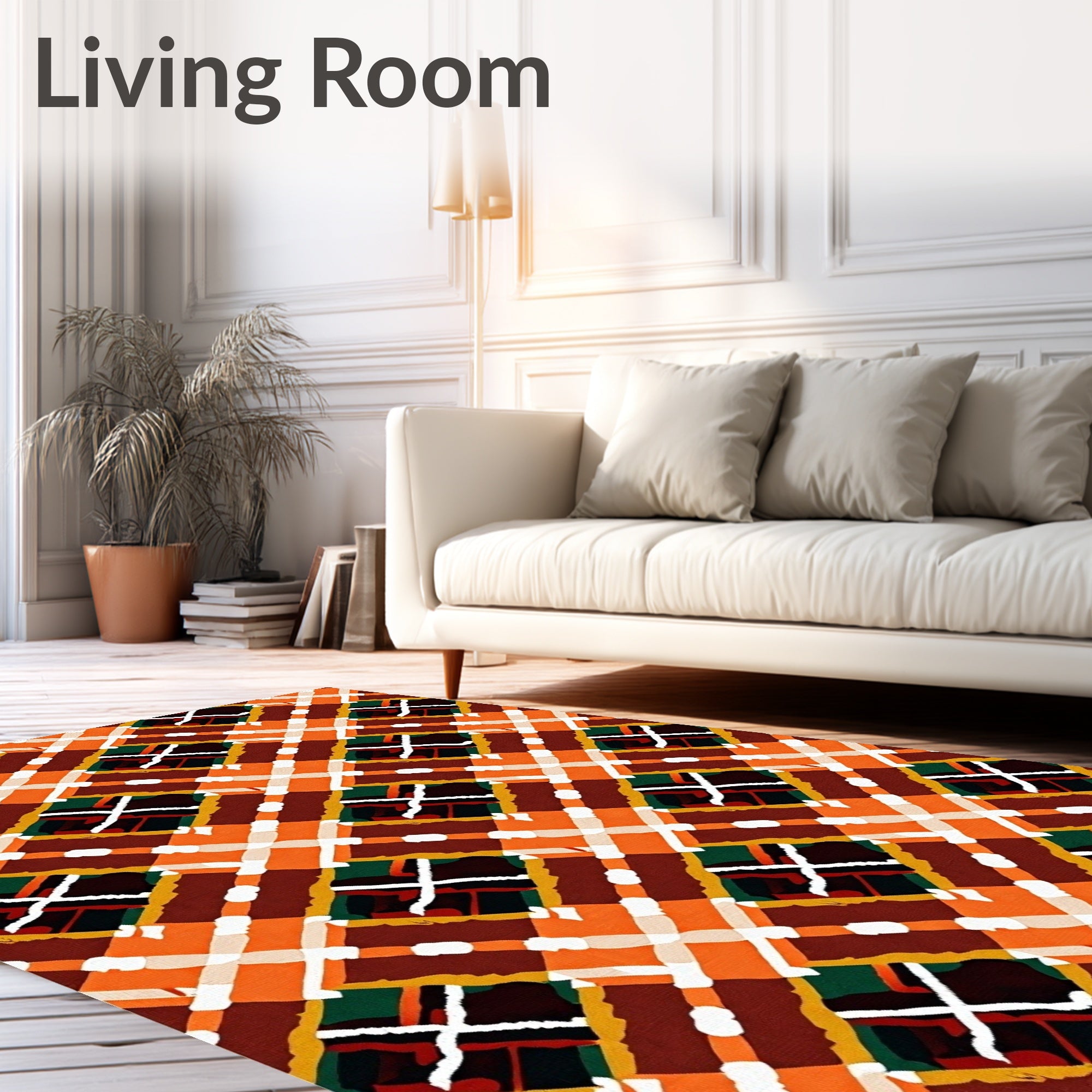 Ultra Soft Area Rug, Non Slip, Stain Resistant, Washable Area Rugs for Living Room, Bedroom, Autumn Tartan Interlocking Lattice(Orange) Overview: