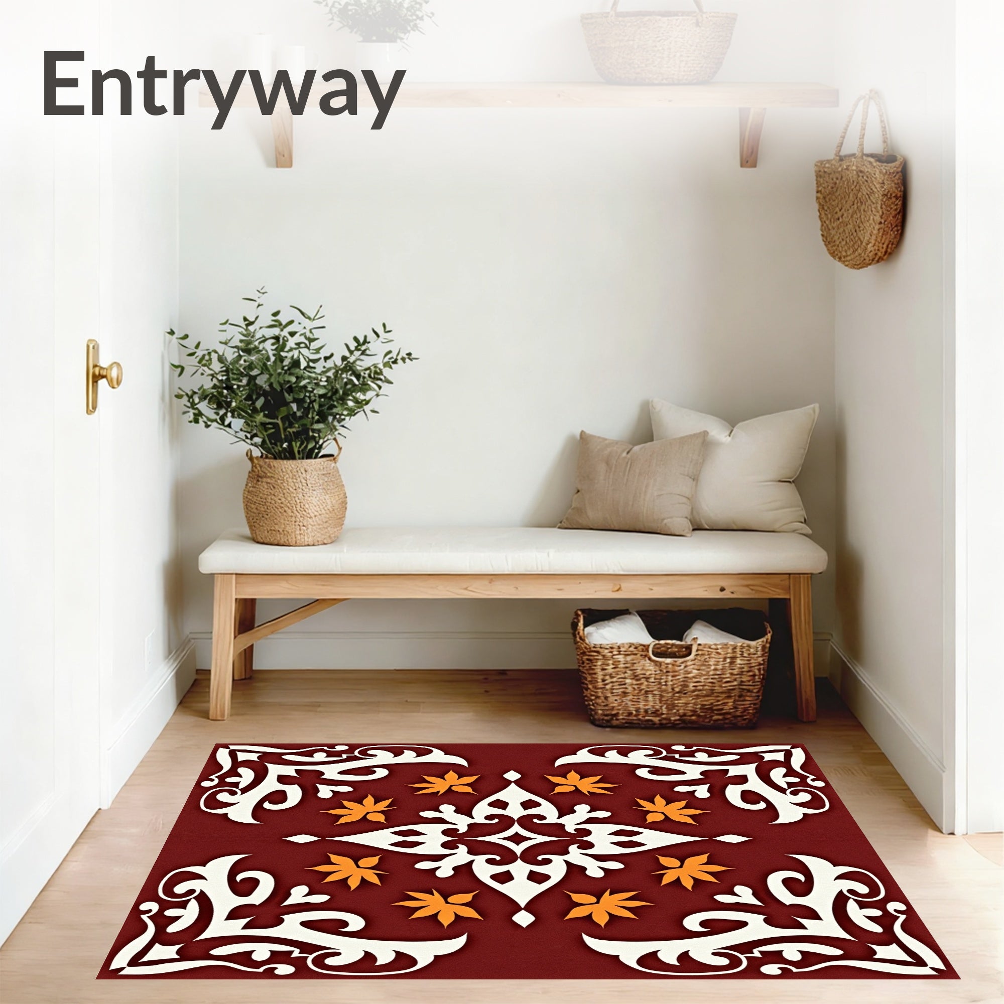 Ultra Soft Area Rug, Non Slip, Stain Resistant, Washable Area Rugs for Living Room, Bedroom, Autumnal Ornate Damask with Distressed Vintage Charm(Brown) Overview: