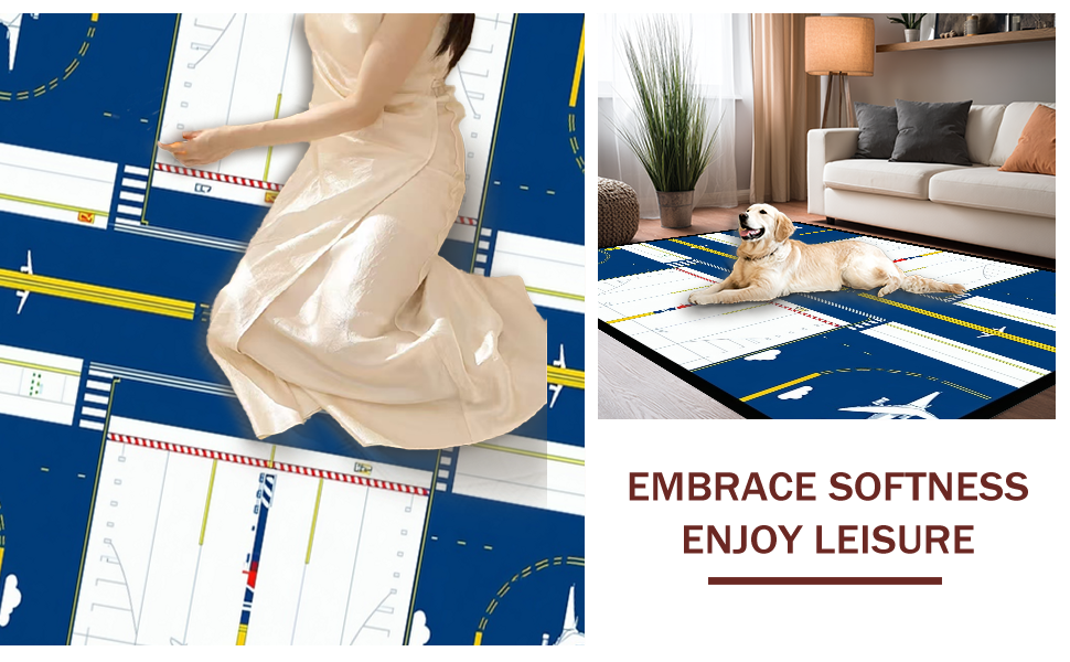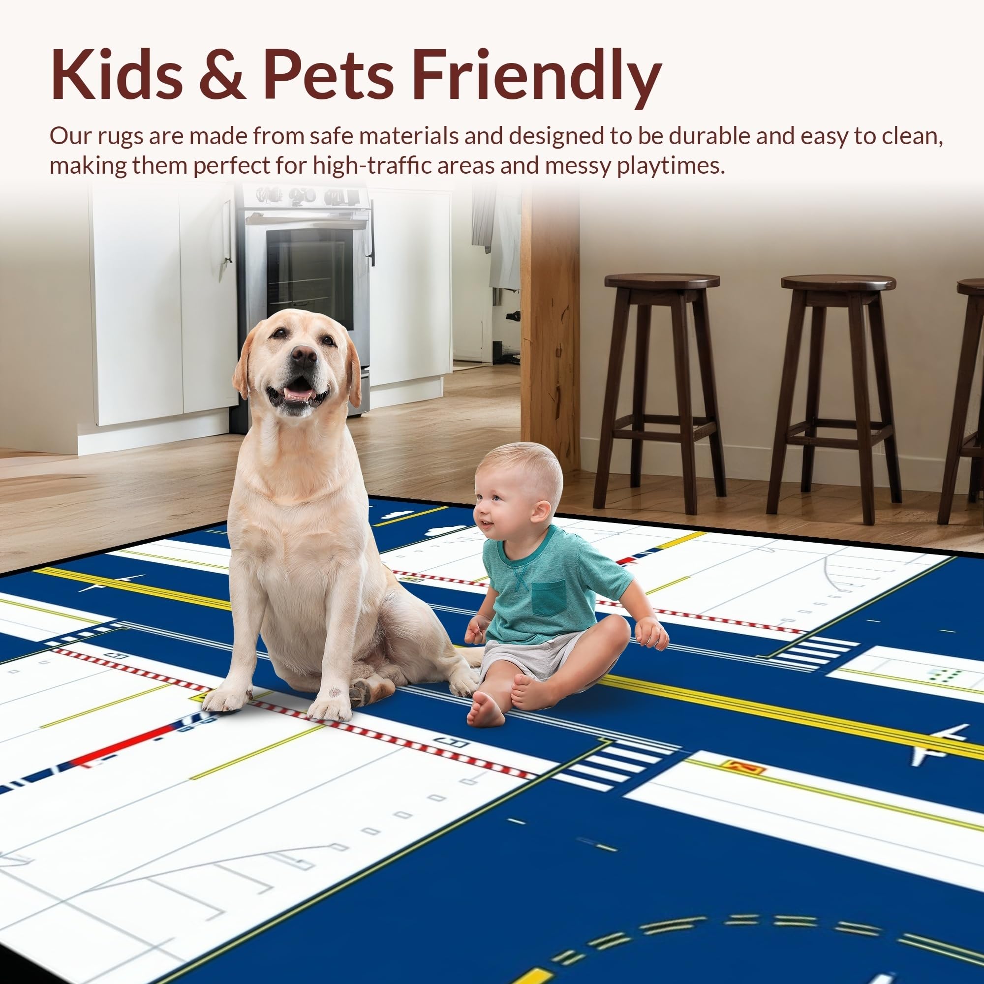 Ultra Soft Area Rug, Non Slip, Stain Resistant, Washable Area Rugs for Living Room, Bedroom, Aviation Inspired Playful Landscape(Blue) Overview: