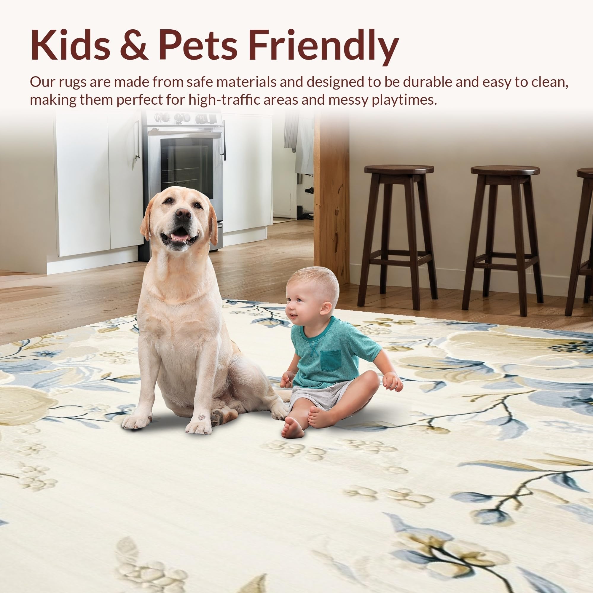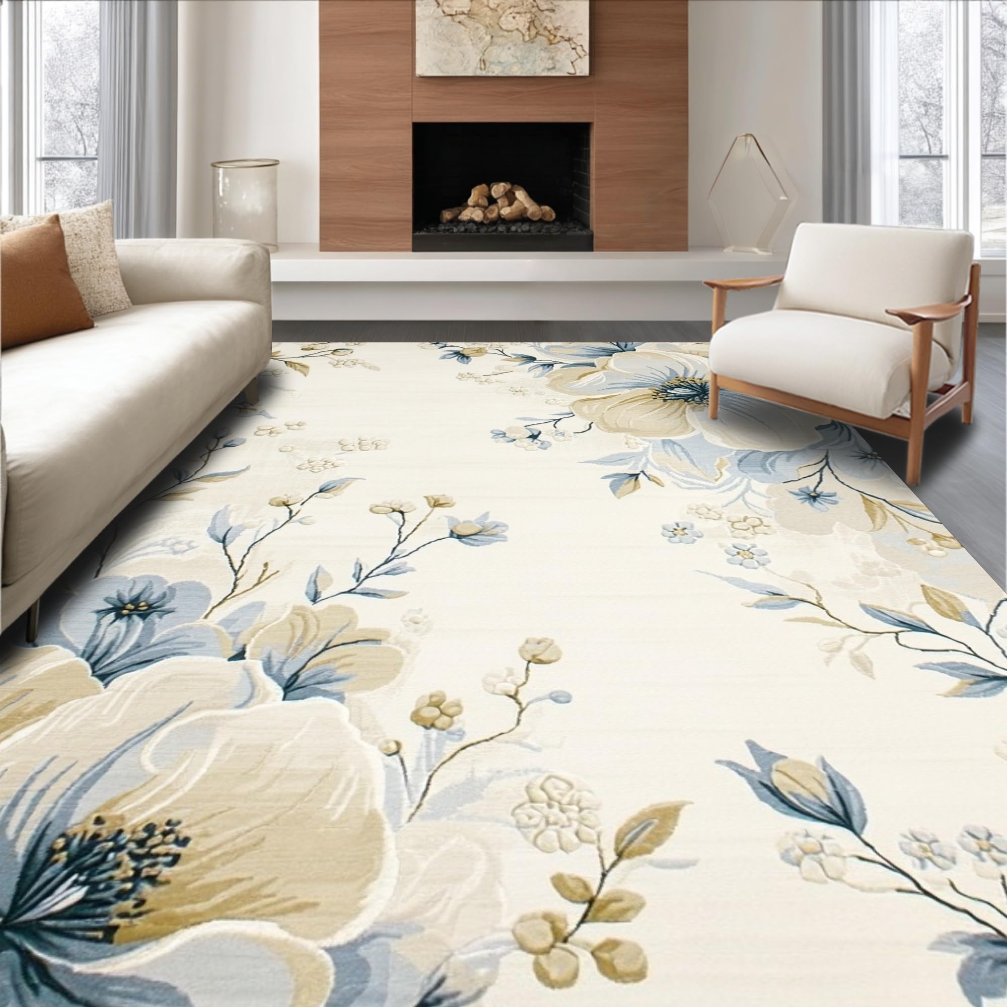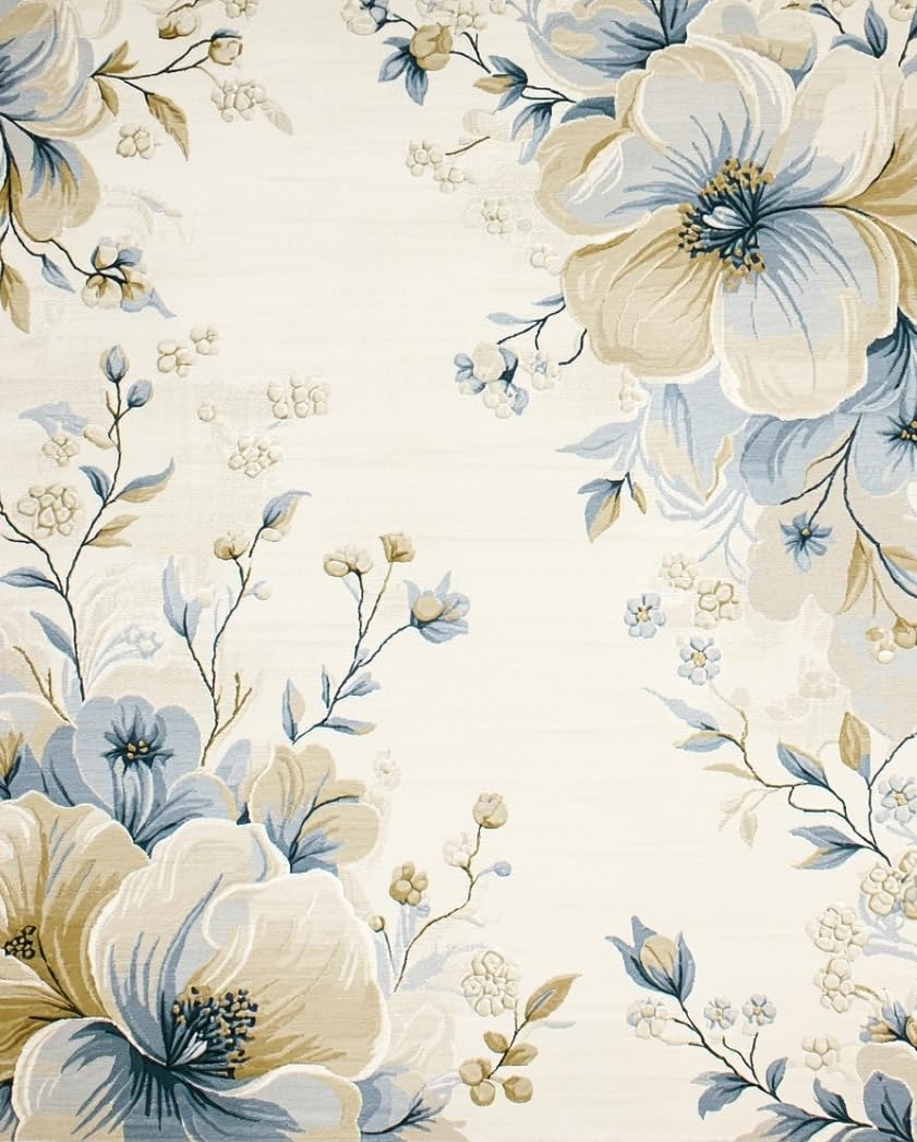 Ultra Soft Area Rug, Non Slip, Stain Resistant, Washable Area Rugs for Living Room, Bedroom, Azure Echoes Area Floral Beige & Blue Oval(Beige) Overview: