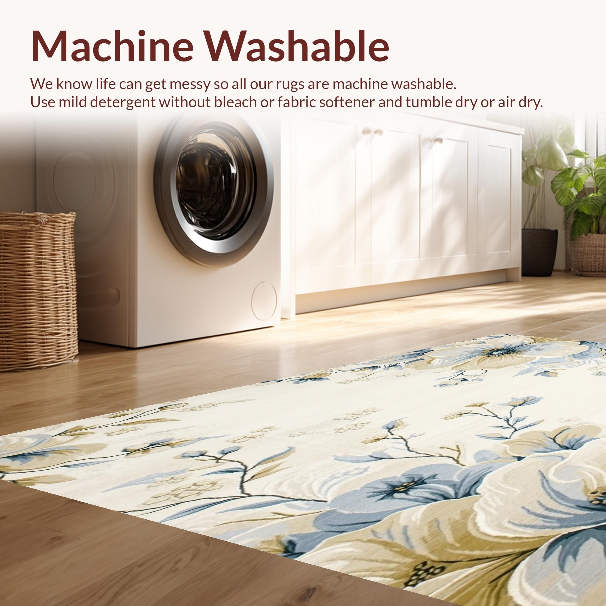 - Machine Washable: Our rugs can be easily thrown in the wash machine.