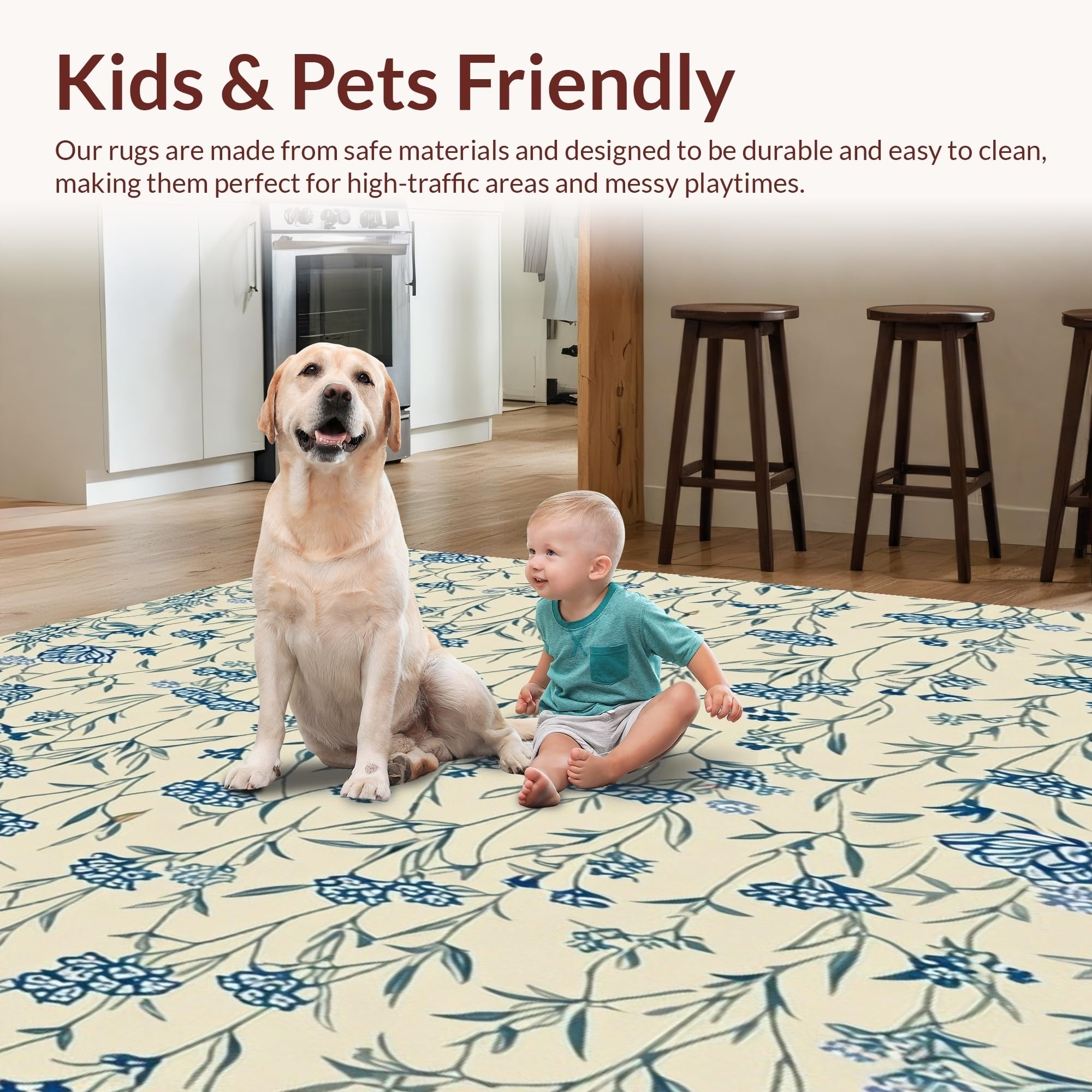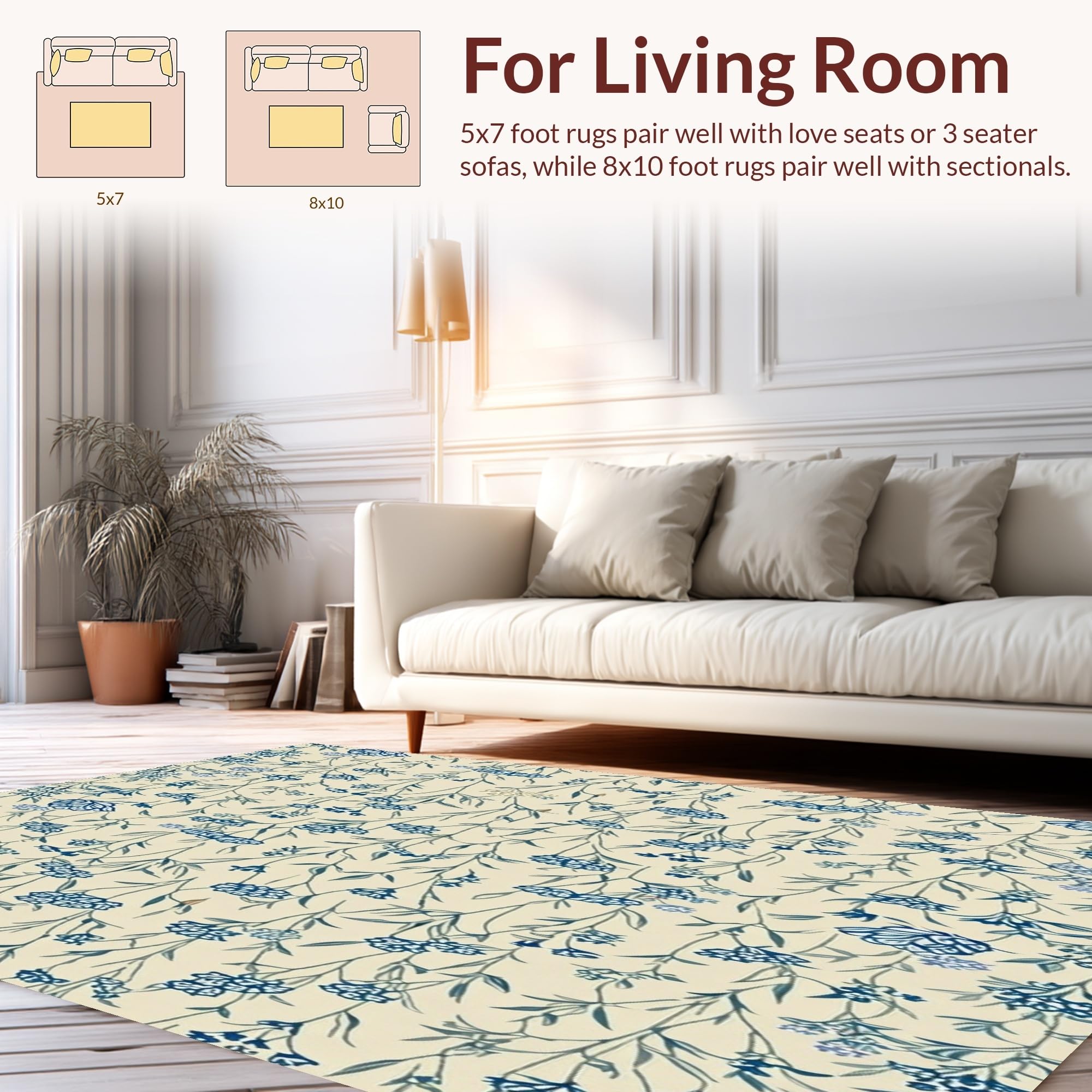 Ultra Soft Area Rug, Non Slip, Stain Resistant, Washable Area Rugs for Living Room, Bedroom, Azure Meadow Beige Floral Woven Style Area(Beige) Overview: