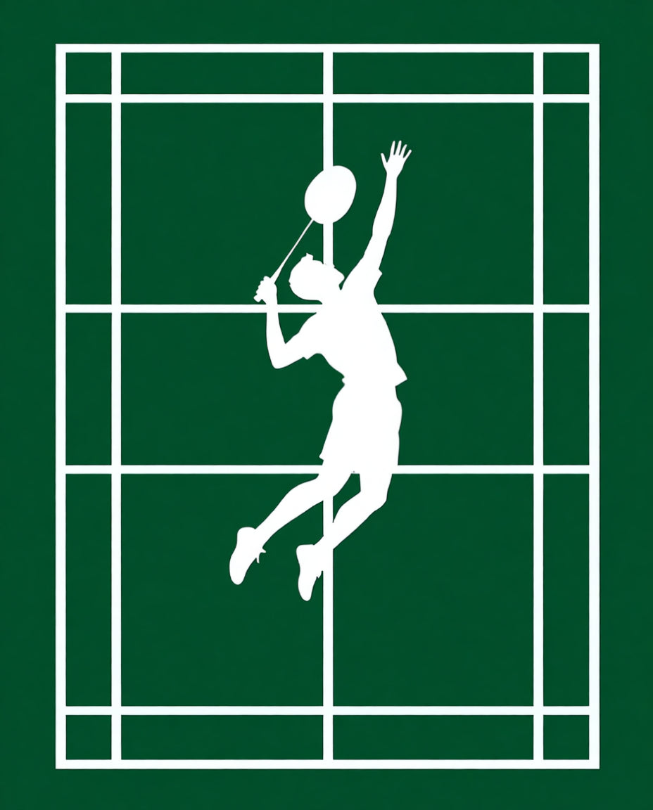 Badminton Jump Smash Player Silhouette Court(Green)