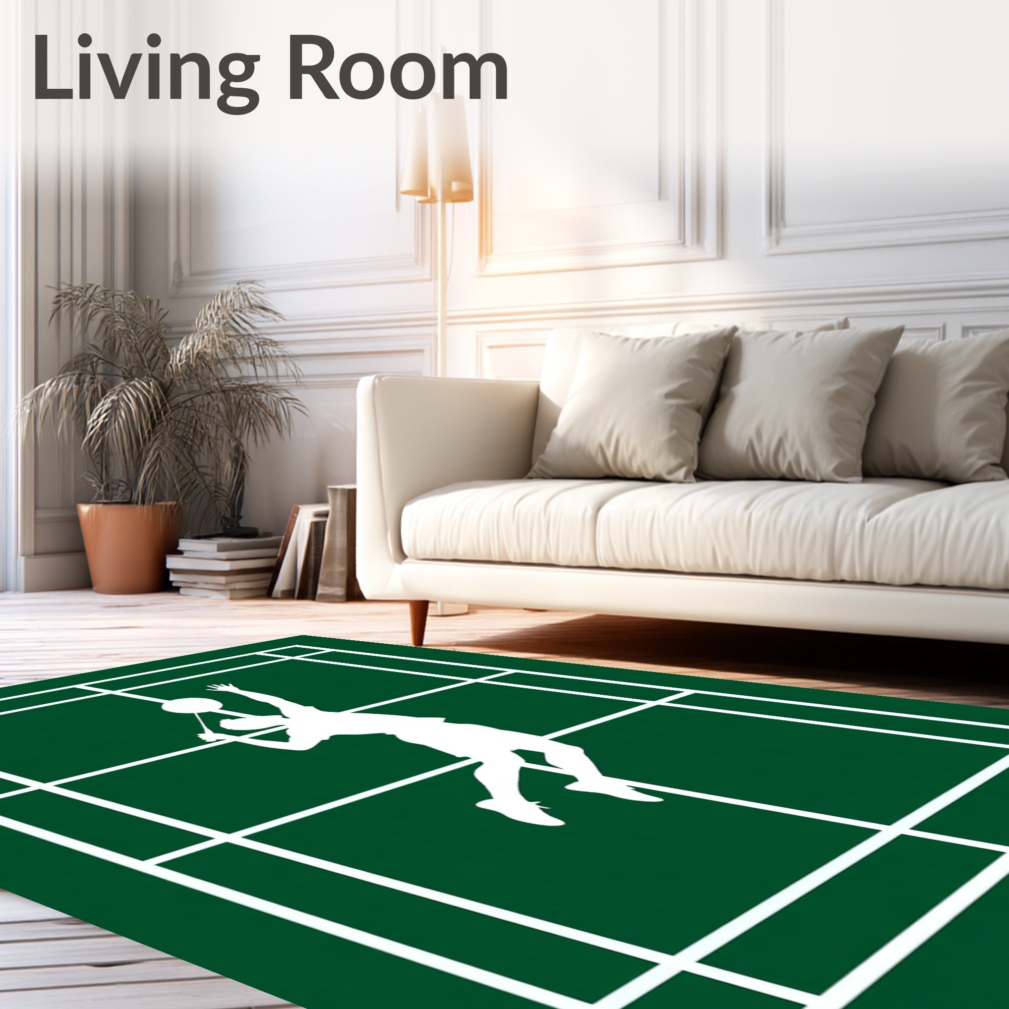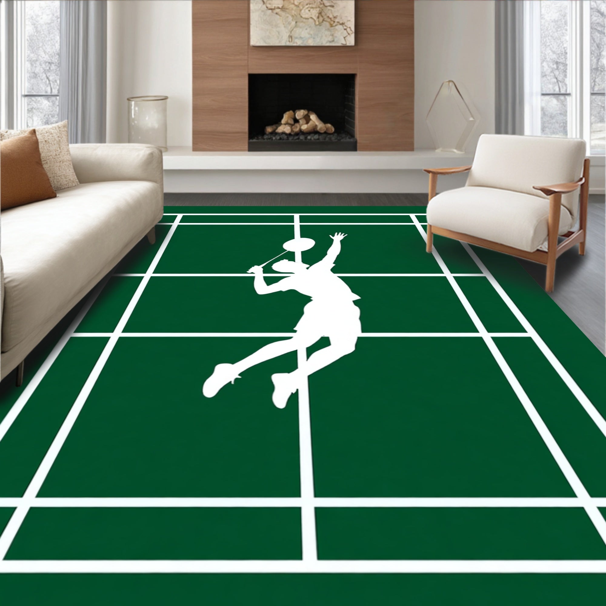 Ultra Soft Area Rug, Non Slip, Stain Resistant, Washable Area Rugs for Living Room, Bedroom, Badminton Jump Smash Player Silhouette Court(green) Overview:
