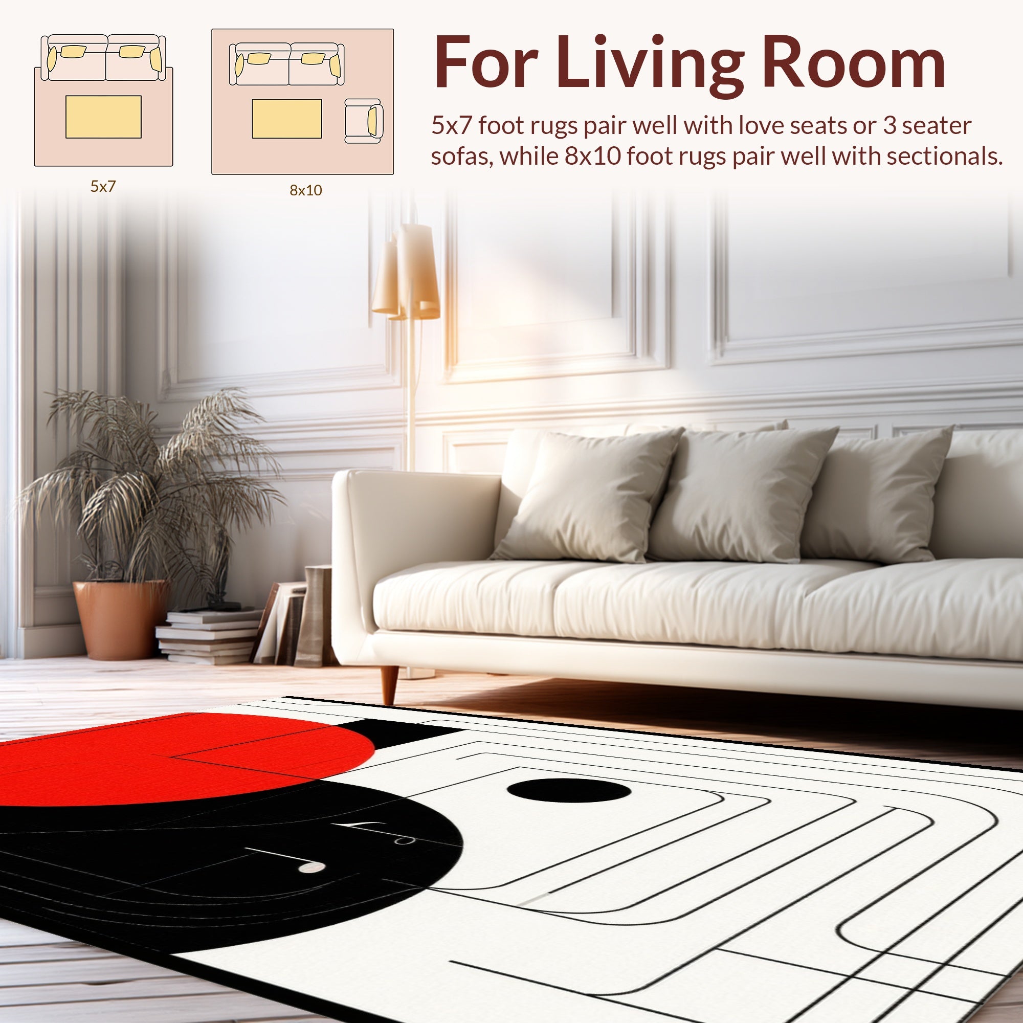 Flatwoven High Traffic Area Rug, Music Black and Themed, Non Slip, Stain Resistant, Washable Area Rugs for Living Room, Bedroom (Red) Overview:
