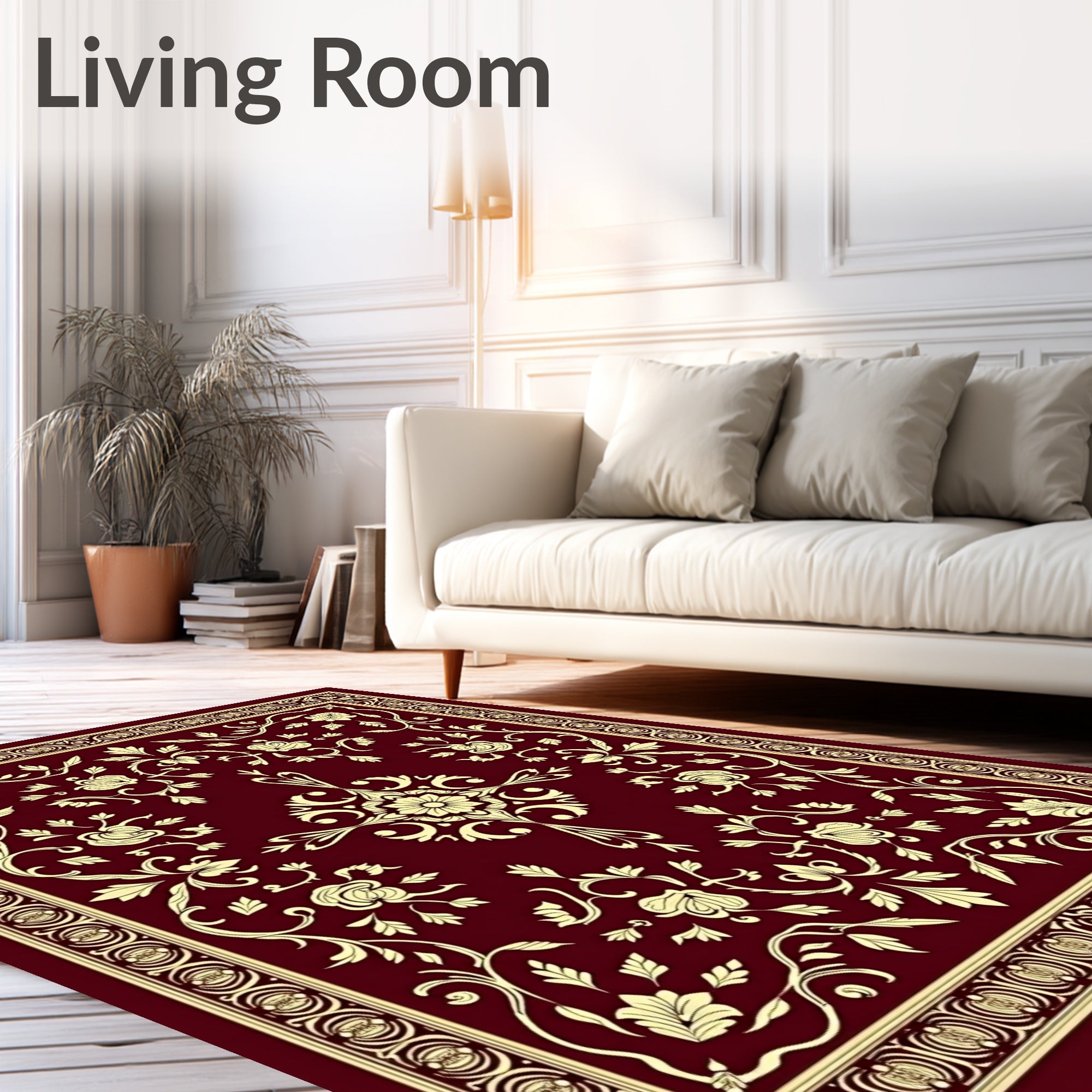 Ultra Soft Area Rug, Non Slip, Stain Resistant, Washable Area Rugs for Living Room, Bedroom, Baroque Floral Damask Scroll Luxurious Decorative Traditional(Red) Overview: