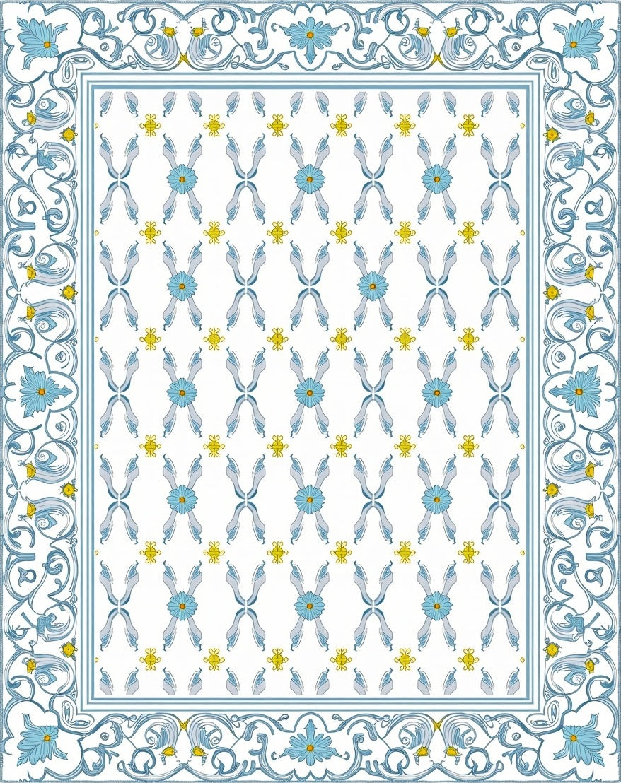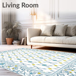 Ultra Soft Area Rug, Non Slip, Stain Resistant, Washable Area Rugs for Living Room, Bedroom, Baroque Floral Lattice with Vintage Damask Motif Accent(Blue) Overview: