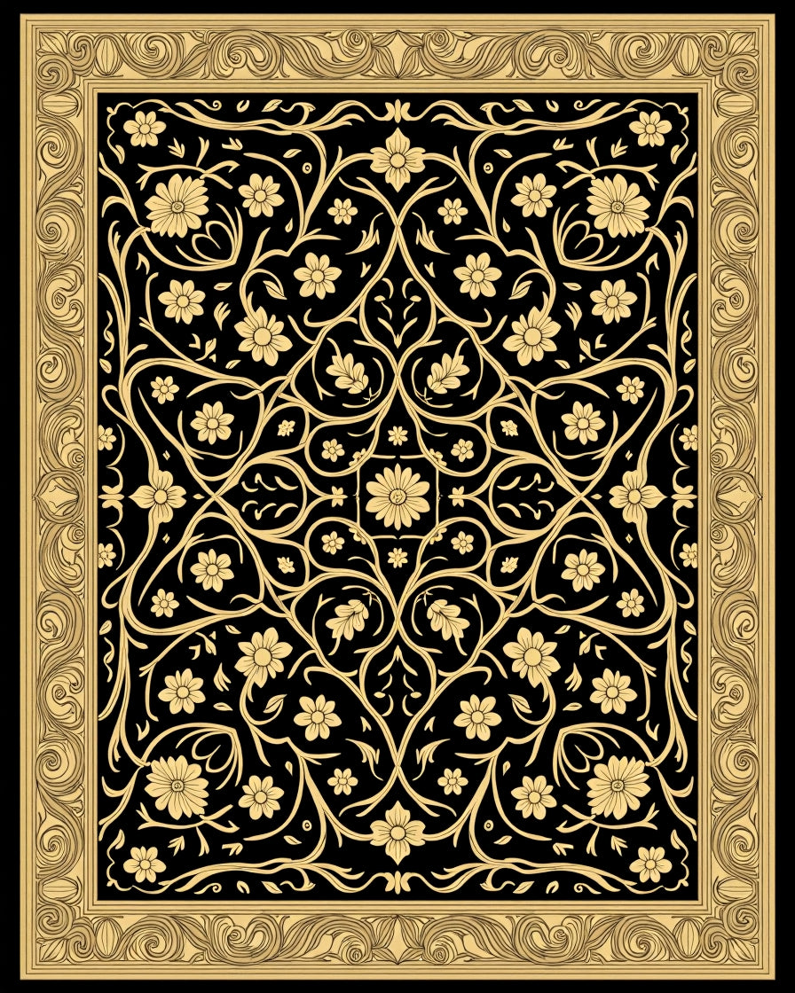 Baroque Floral Trellis with Interlocking Vine Filigree(Black)