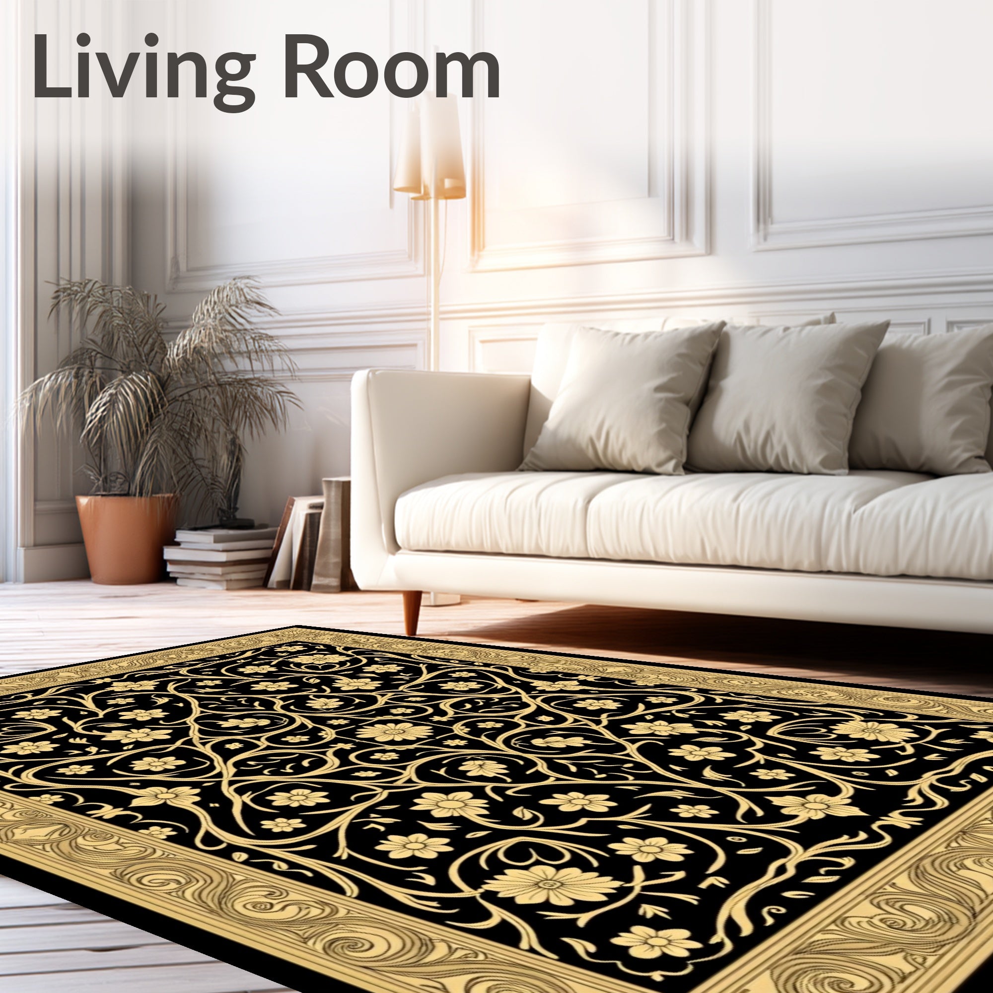 Flatwoven High Traffic Area Rug, Baroque Floral Trellis with Interlocking Vine Filigree, Non Slip, Stain Resistant, Washable Area Rugs for Living Room, Bedroom (Black) Overview: