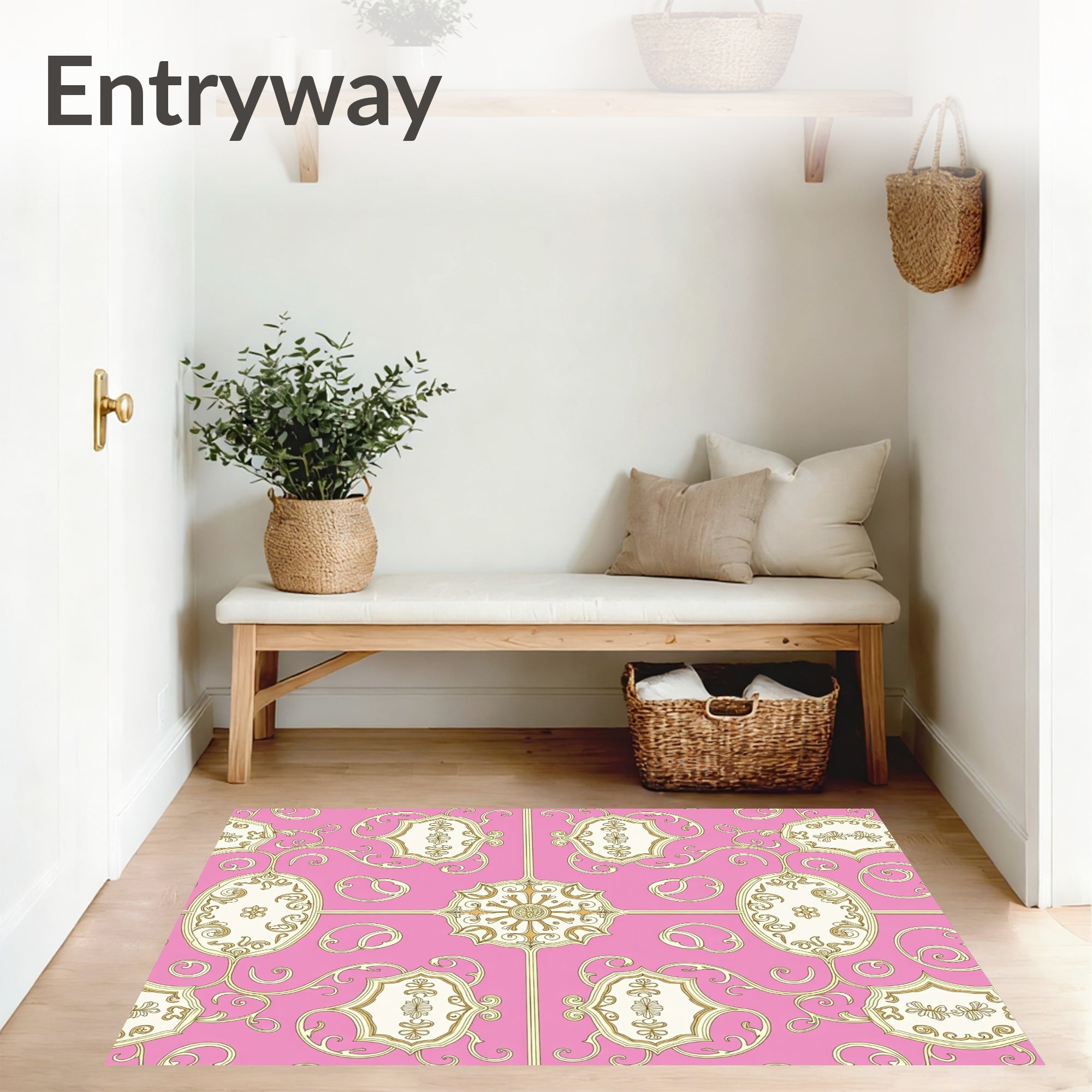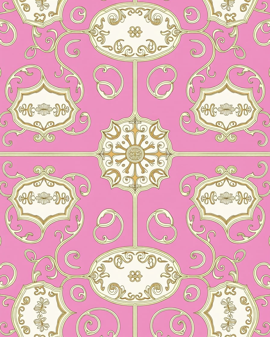 Baroque Scrollwork Medallion Design Floor(Pink)