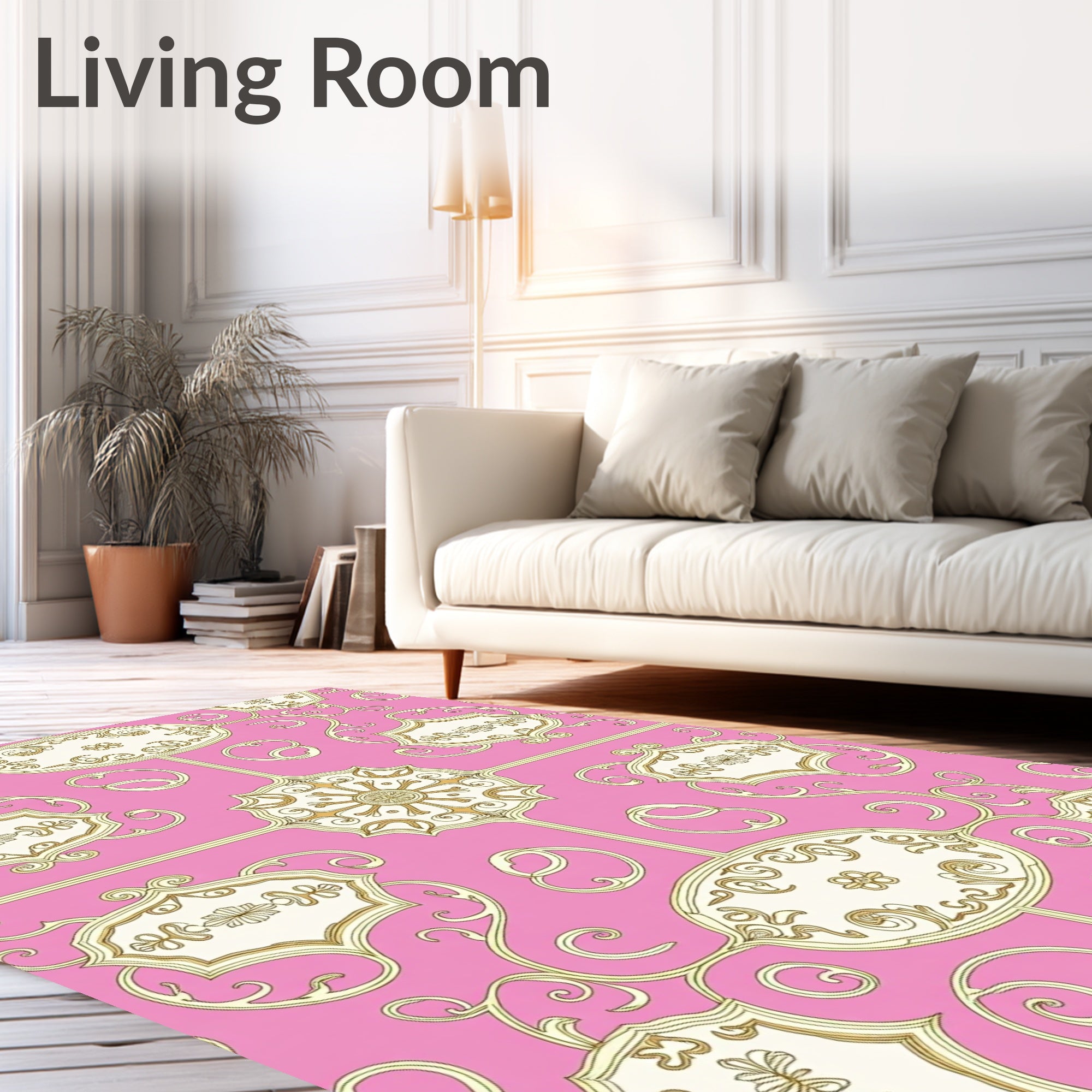 Ultra Soft Area Rug, Non Slip, Stain Resistant, Washable Area Rugs for Living Room, Bedroom, Baroque Scrollwork Medallion Design Floor(Pink) Overview: