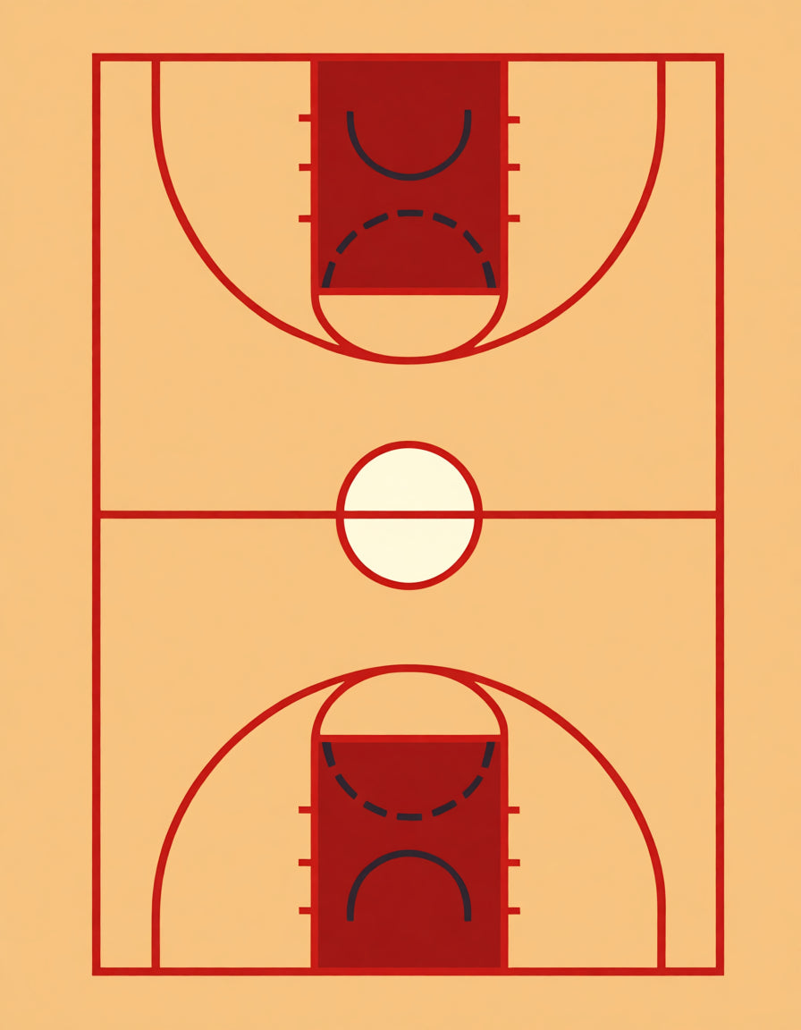 Basketball Court Wood Floor Maroon Key Red Lines Cream Circle(Beige)