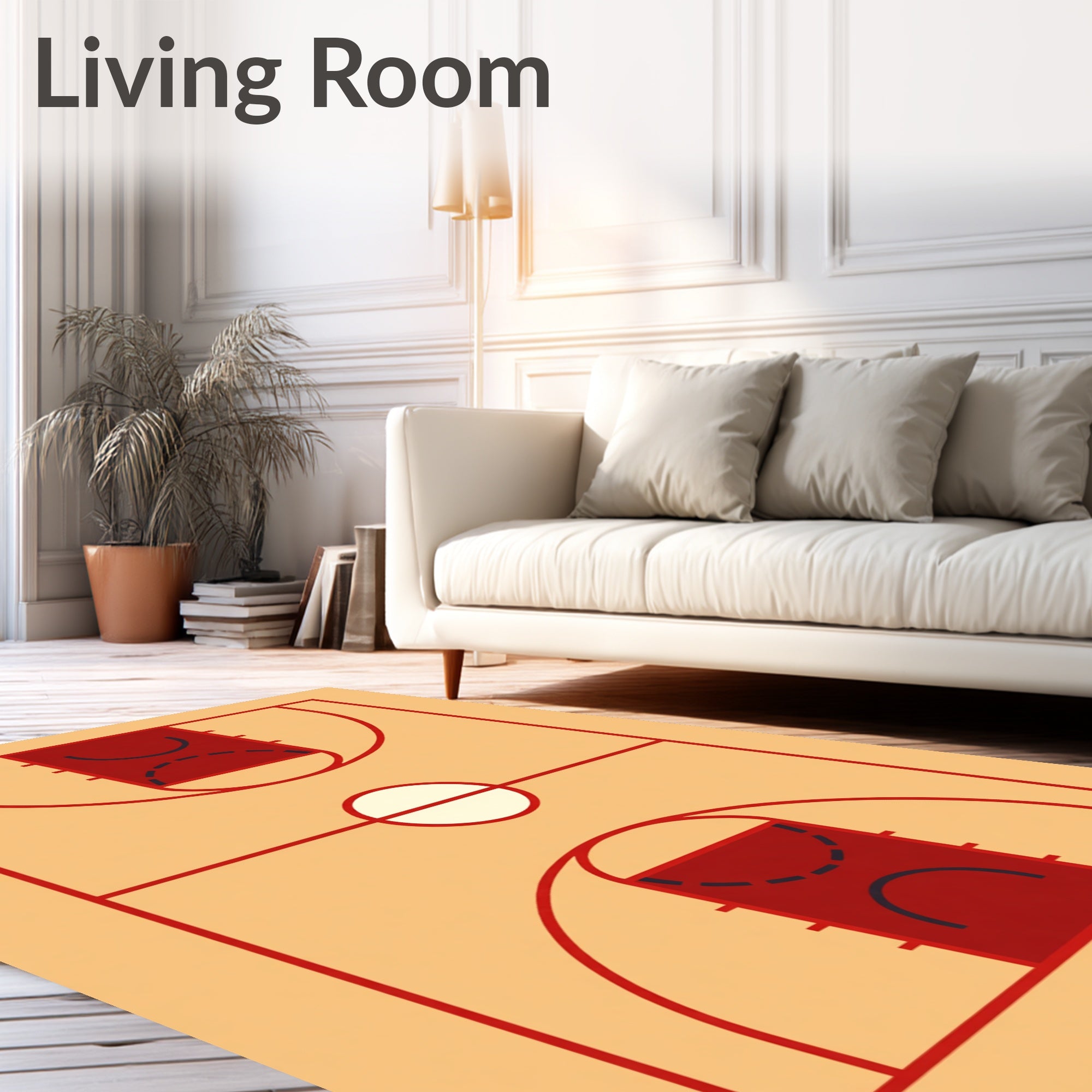 Ultra Soft Area Rug, Non Slip, Stain Resistant, Washable Area Rugs for Living Room, Bedroom, Basketball Court Wood Floor Maroon Key Red Lines Cream Circle(beige) Overview: