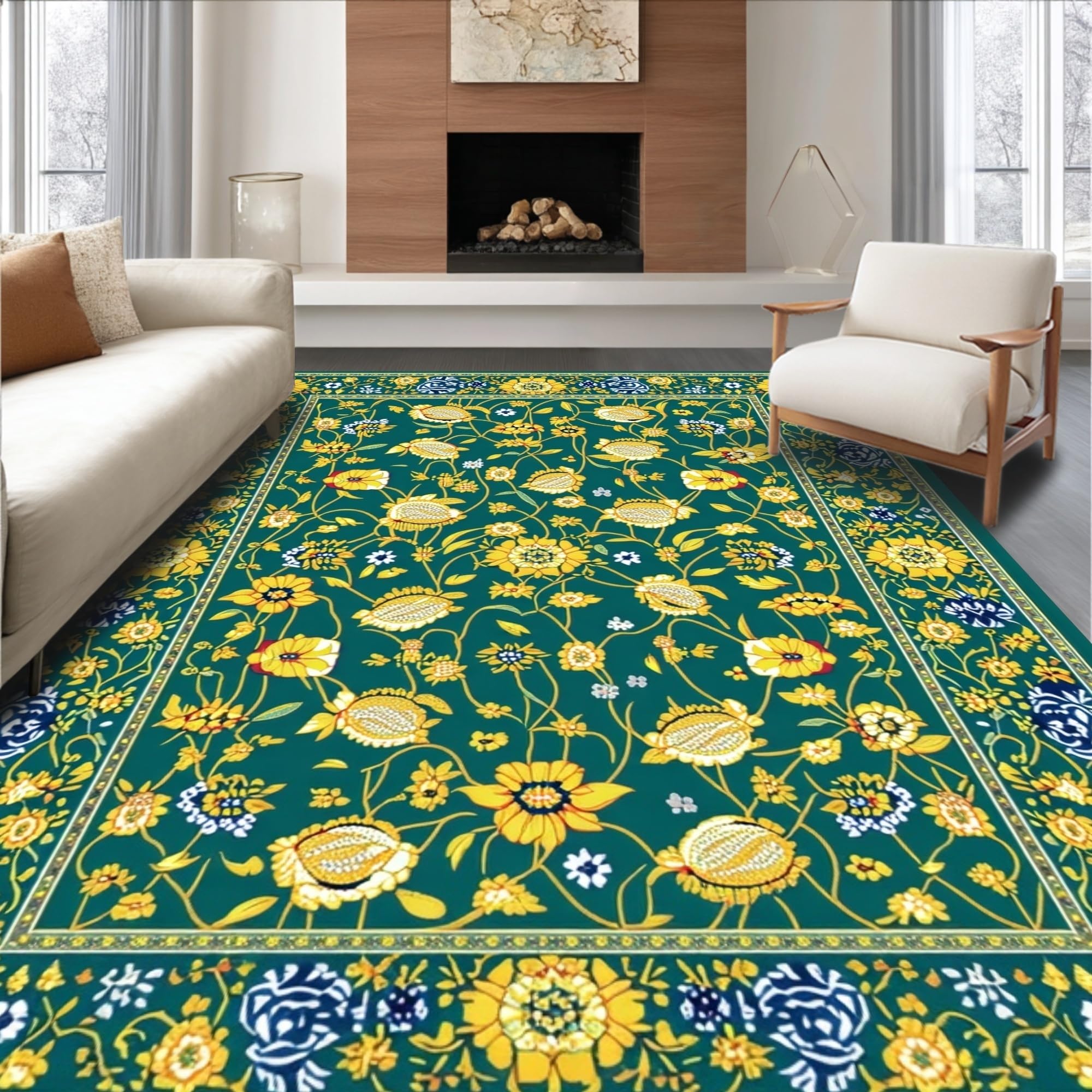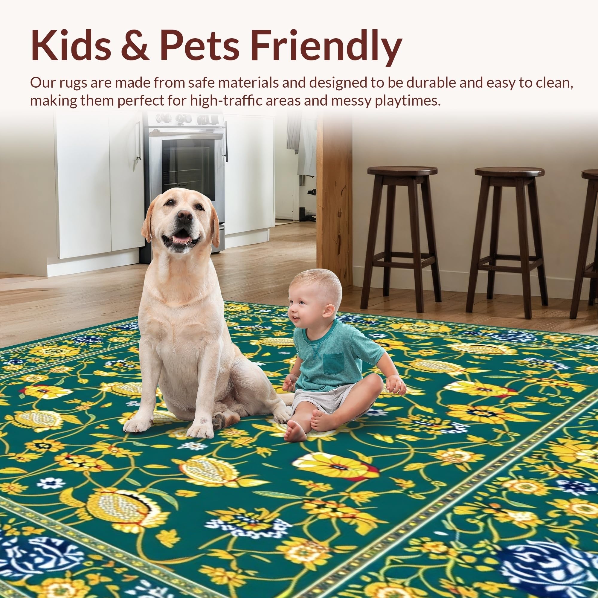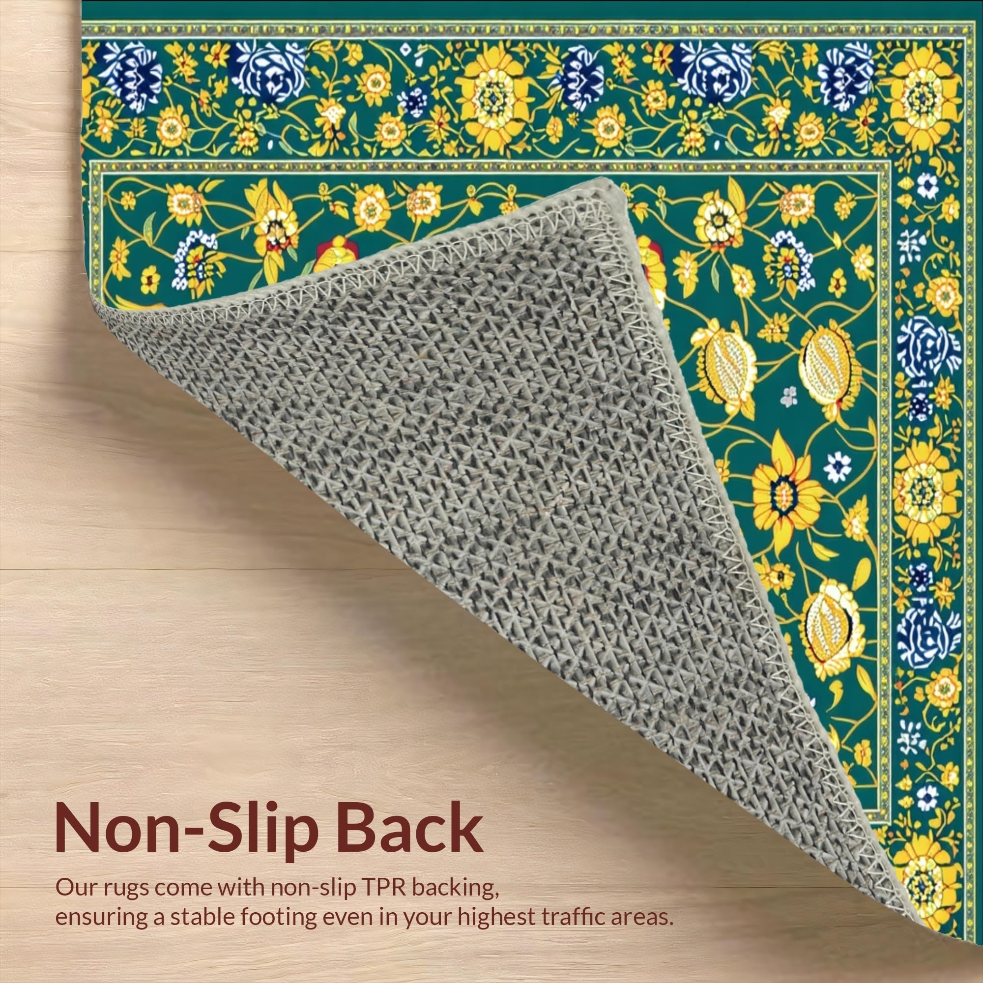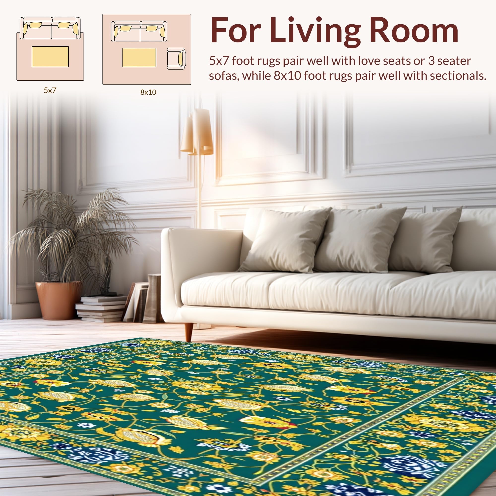 Ultra Soft Area Rug, Non Slip, Stain Resistant, Washable Area Rugs for Living Room, Bedroom, Bathroom with Floral Prints(Green) Overview: