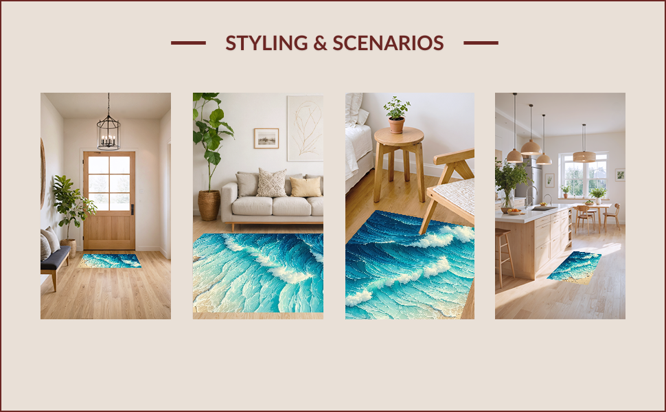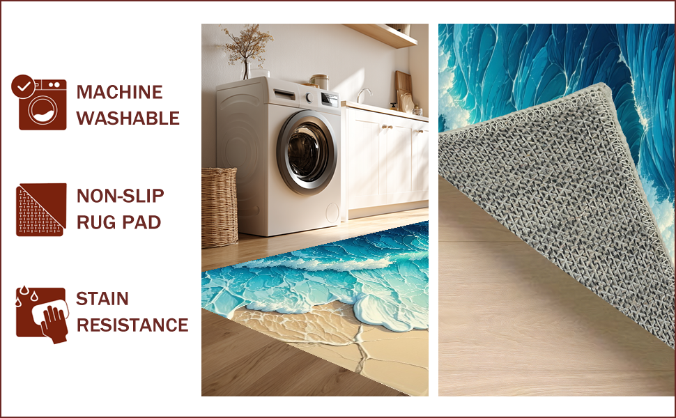 Ultra Soft Area Rug, Non Slip, Stain Resistant, Washable Area Rugs for Living Room, Bedroom, Beach-Themed Nautical Kitchen Stain-Resistant Carpet(Blue) Overview: