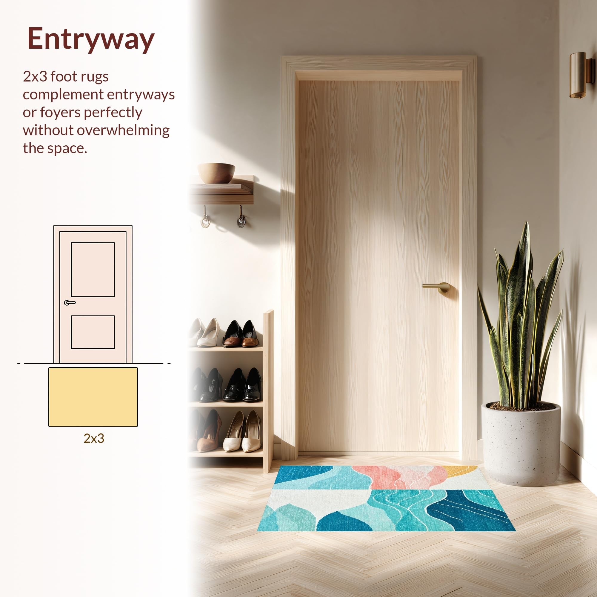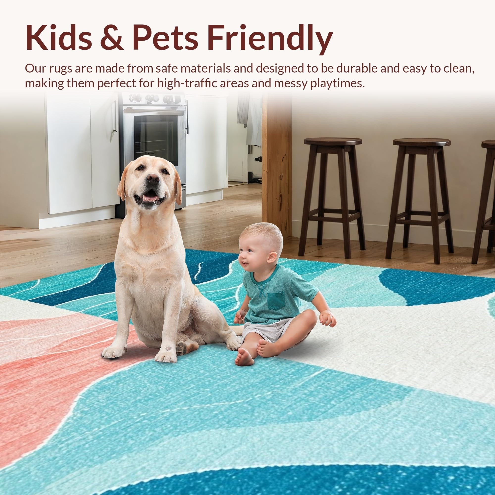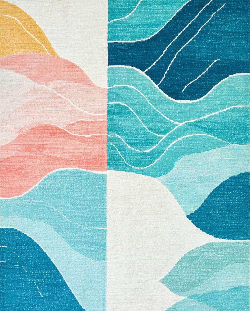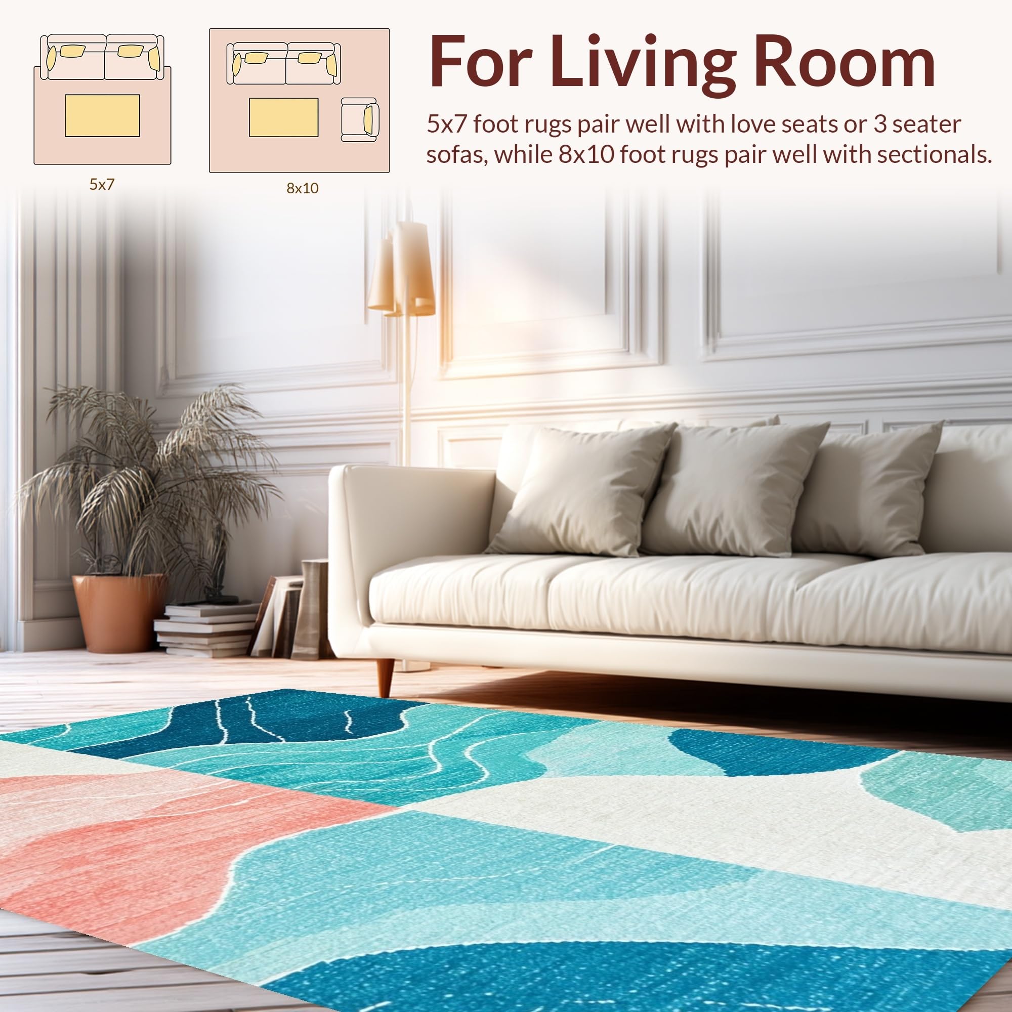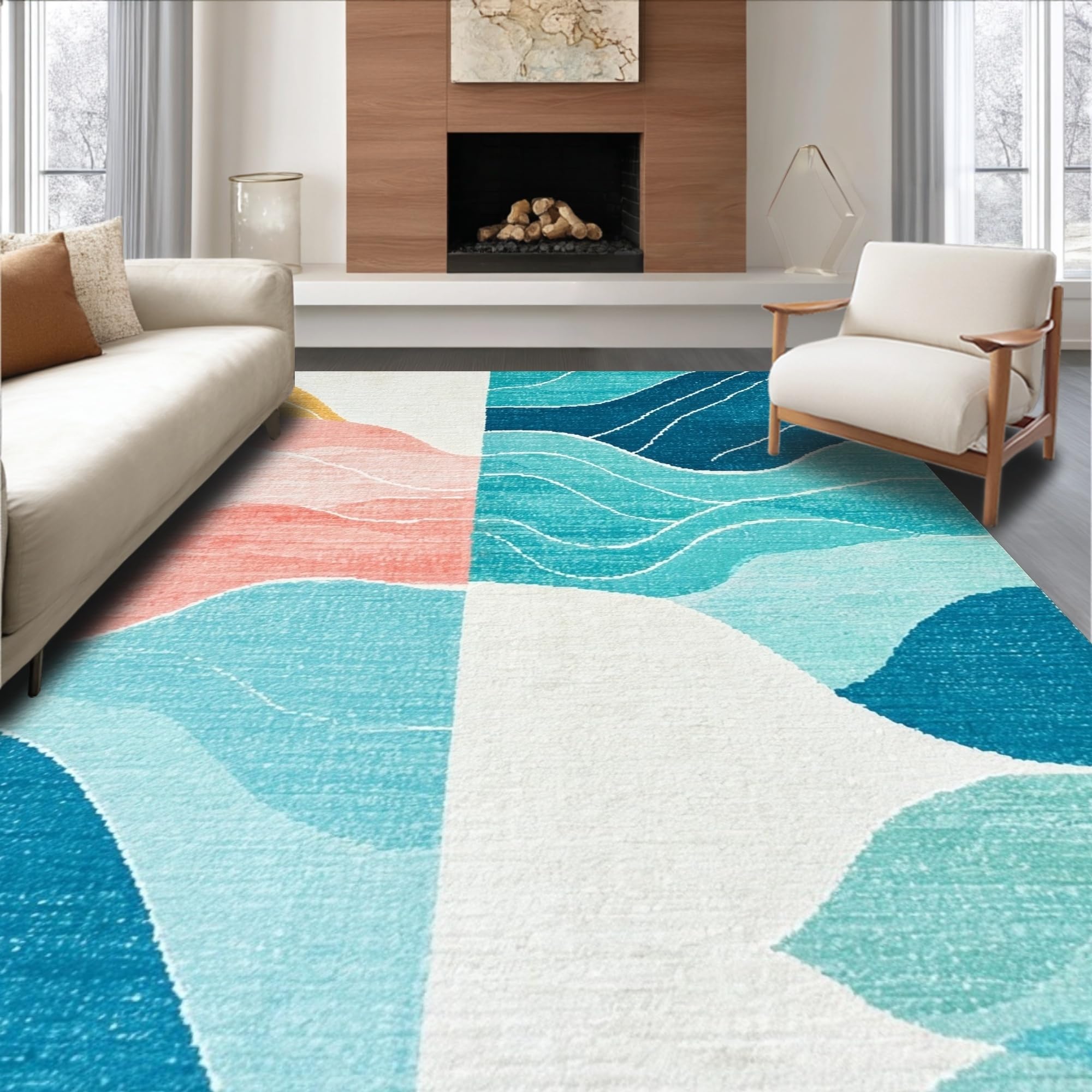 Ultra Soft Area Rug, Non Slip, Stain Resistant, Washable Area Rugs for Living Room, Bedroom, Beach Vibes Surfboard Carpet Coastal Wave Rug with Retro Surf Motif(Blue) Overview: