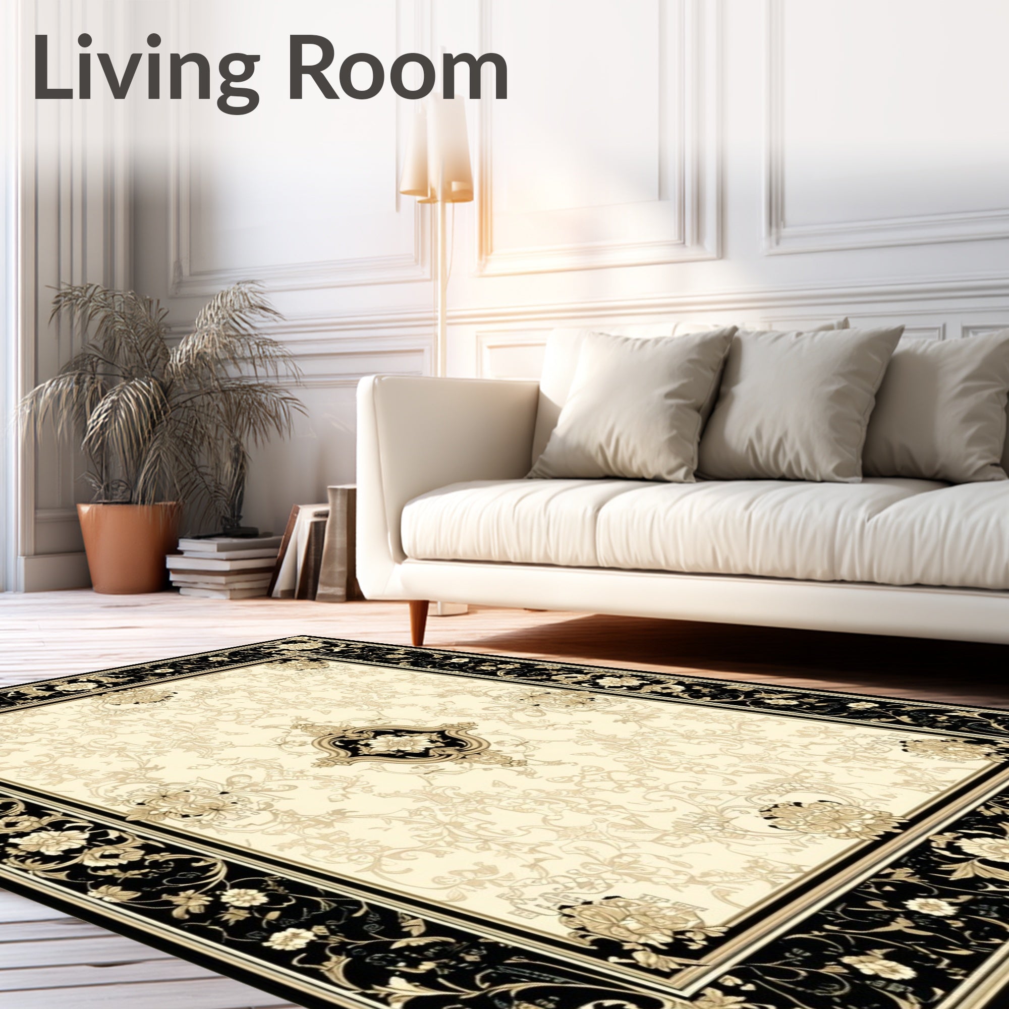 Flatwoven High Traffic Area Rug, Beautiful with Classic Black and Beige Decorative, Non Slip, Stain Resistant, Washable Area Rugs for Living Room, Bedroom (Beige) Overview: