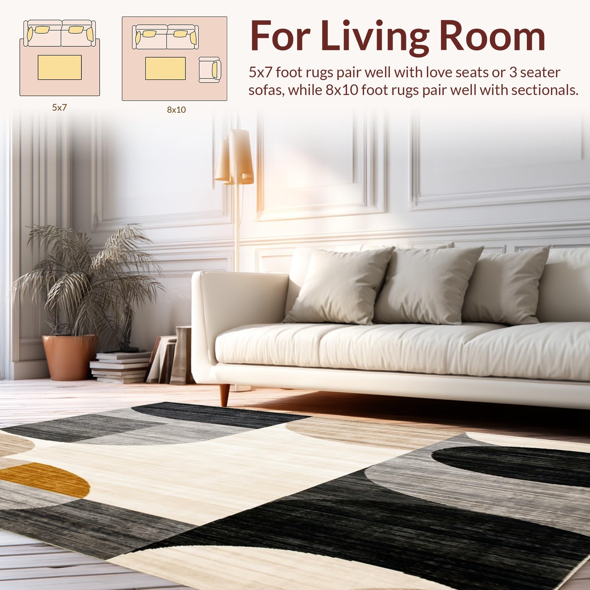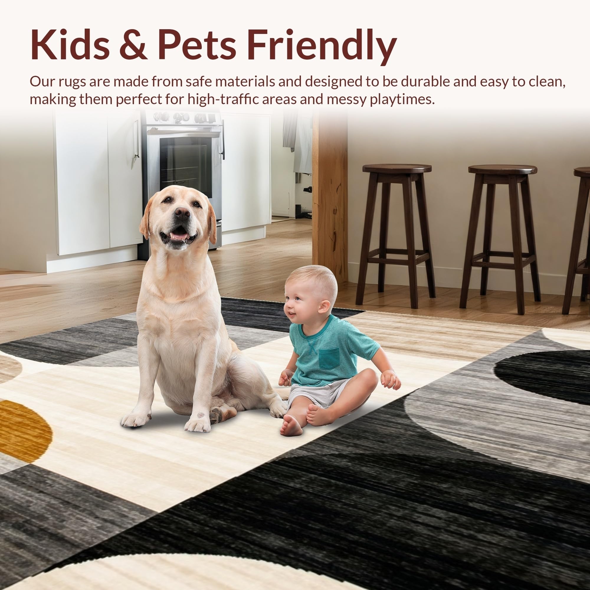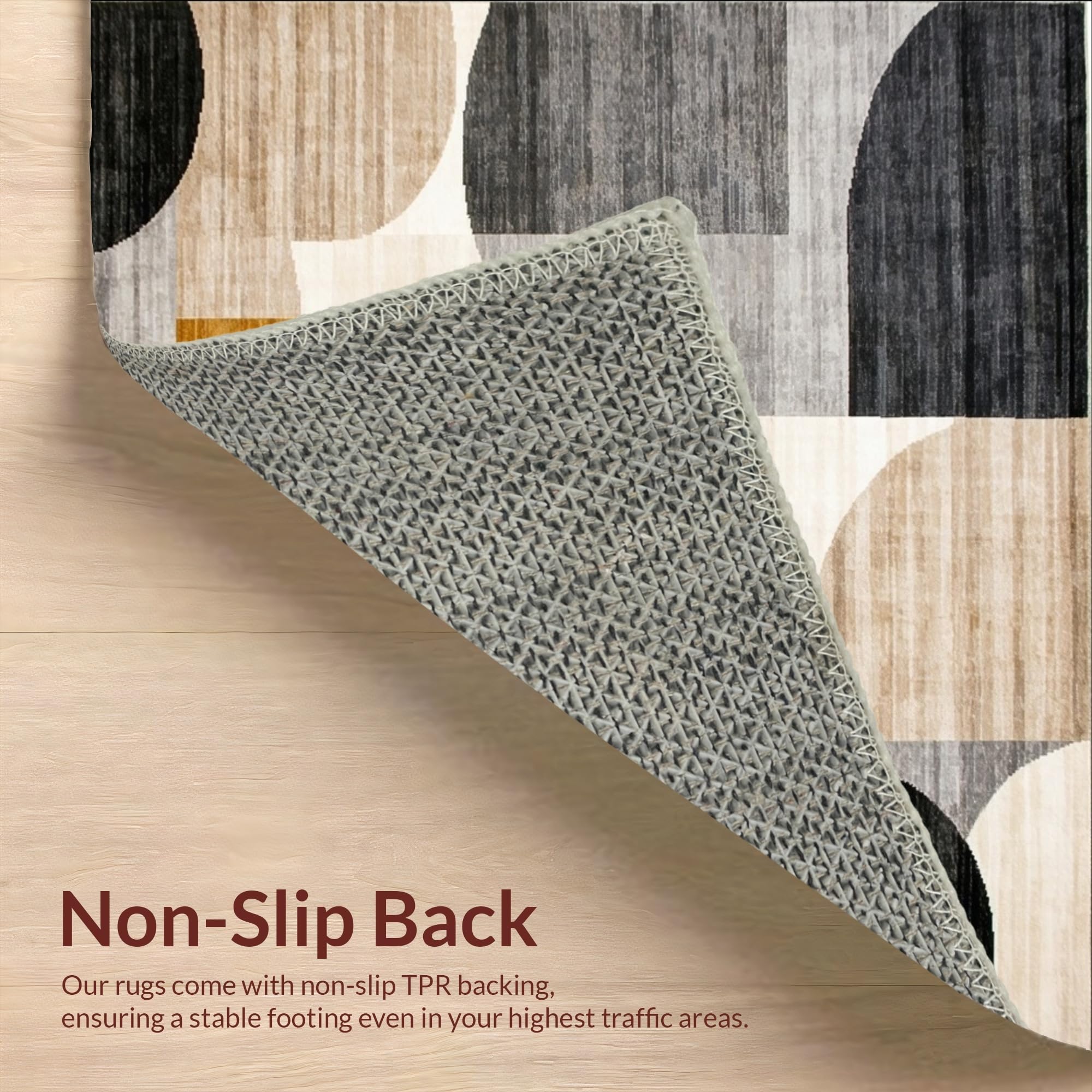 Ultra Soft Area Rug, Non Slip, Stain Resistant, Washable Area Rugs for Living Room, Bedroom, Beige Black Abstract Modern Geometric Circles Area Design(Gray) Overview: