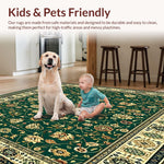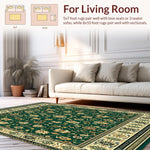Ultra Soft Area Rug, Non Slip, Stain Resistant, Washable Area Rugs for Living Room, Bedroom, Beige Boho with Floral Motifs(Green) Overview: