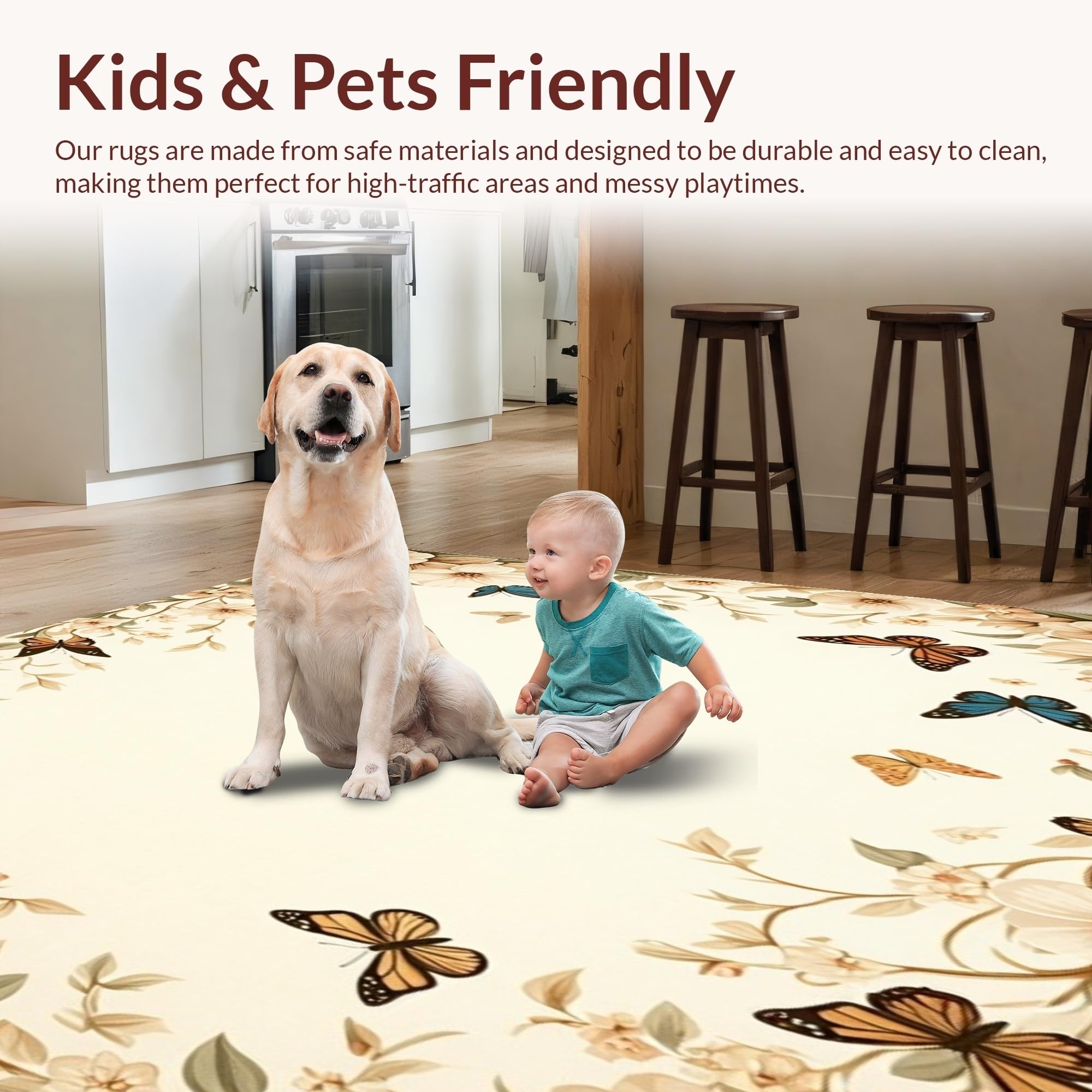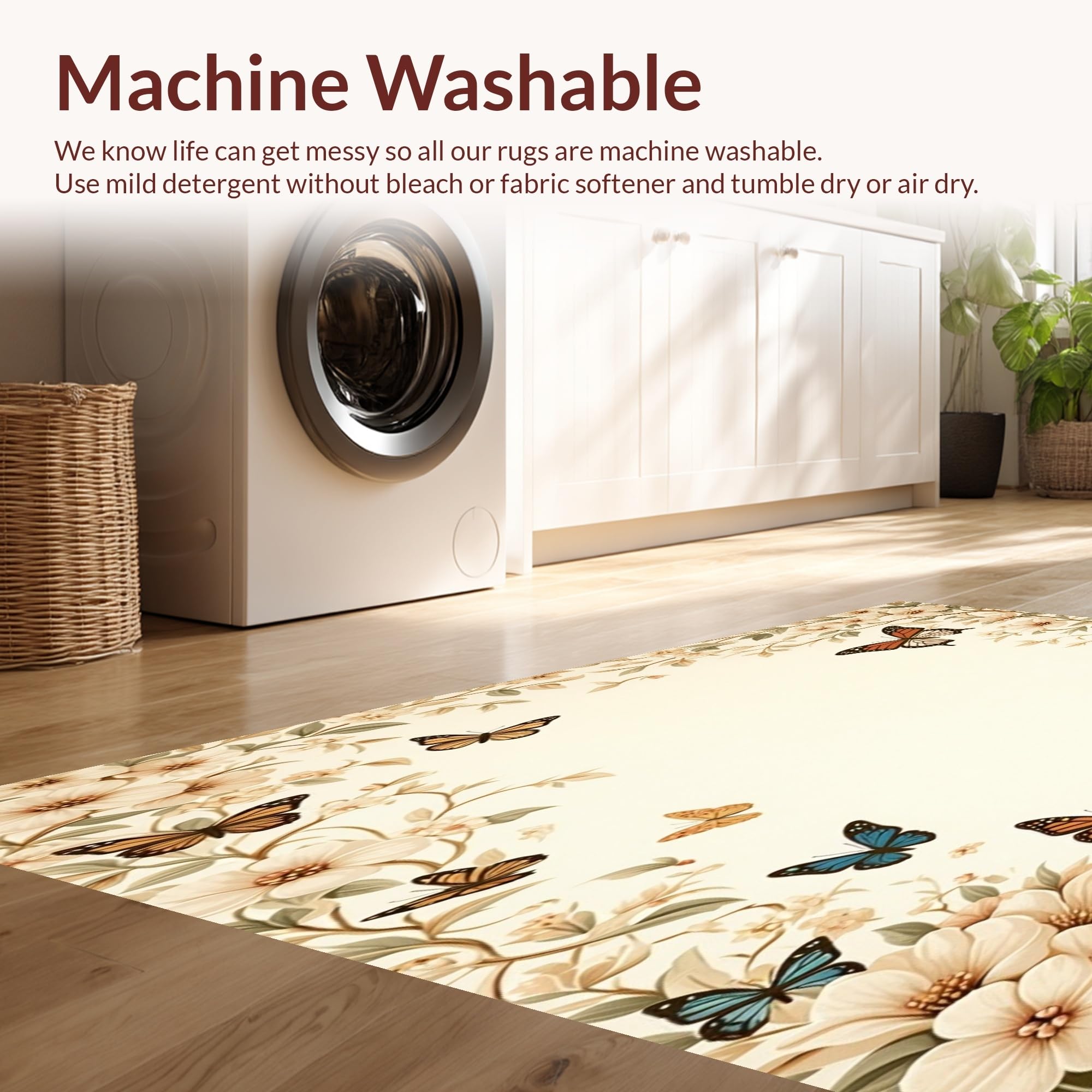 Ultra Soft Area Rug, Non Slip, Stain Resistant, Washable Area Rugs for Living Room, Bedroom, Beige Butterfly Floral Non Slip Area(Beige) Overview: