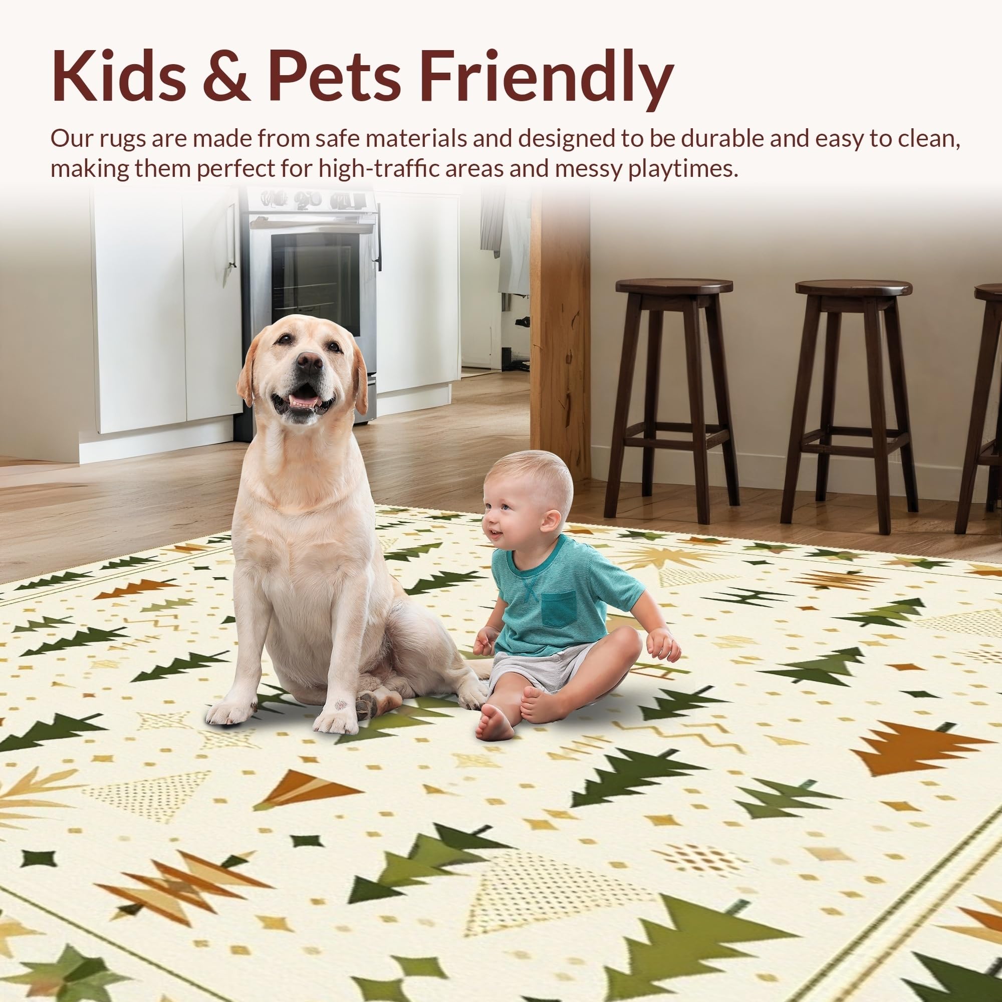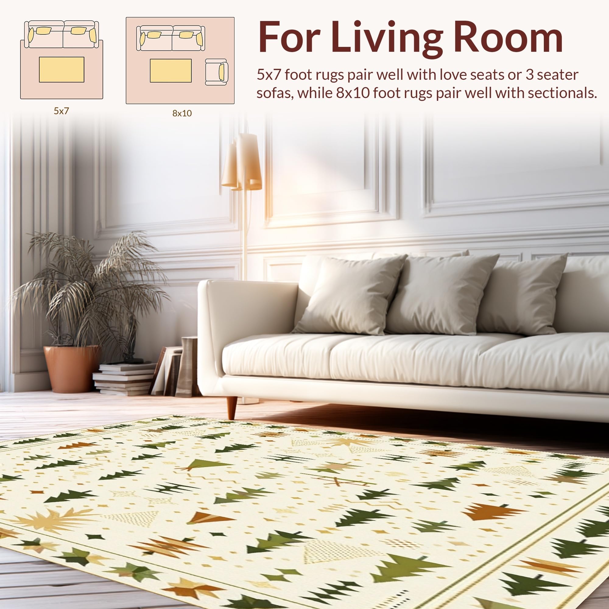 Ultra Soft Area Rug, Non Slip, Stain Resistant, Washable Area Rugs for Living Room, Bedroom, Beige Camper Expedition with Geometric Tent and Pine Tree Motifs(Beige) Overview: