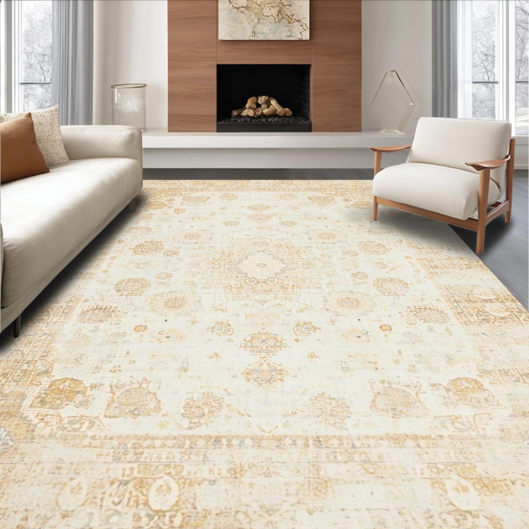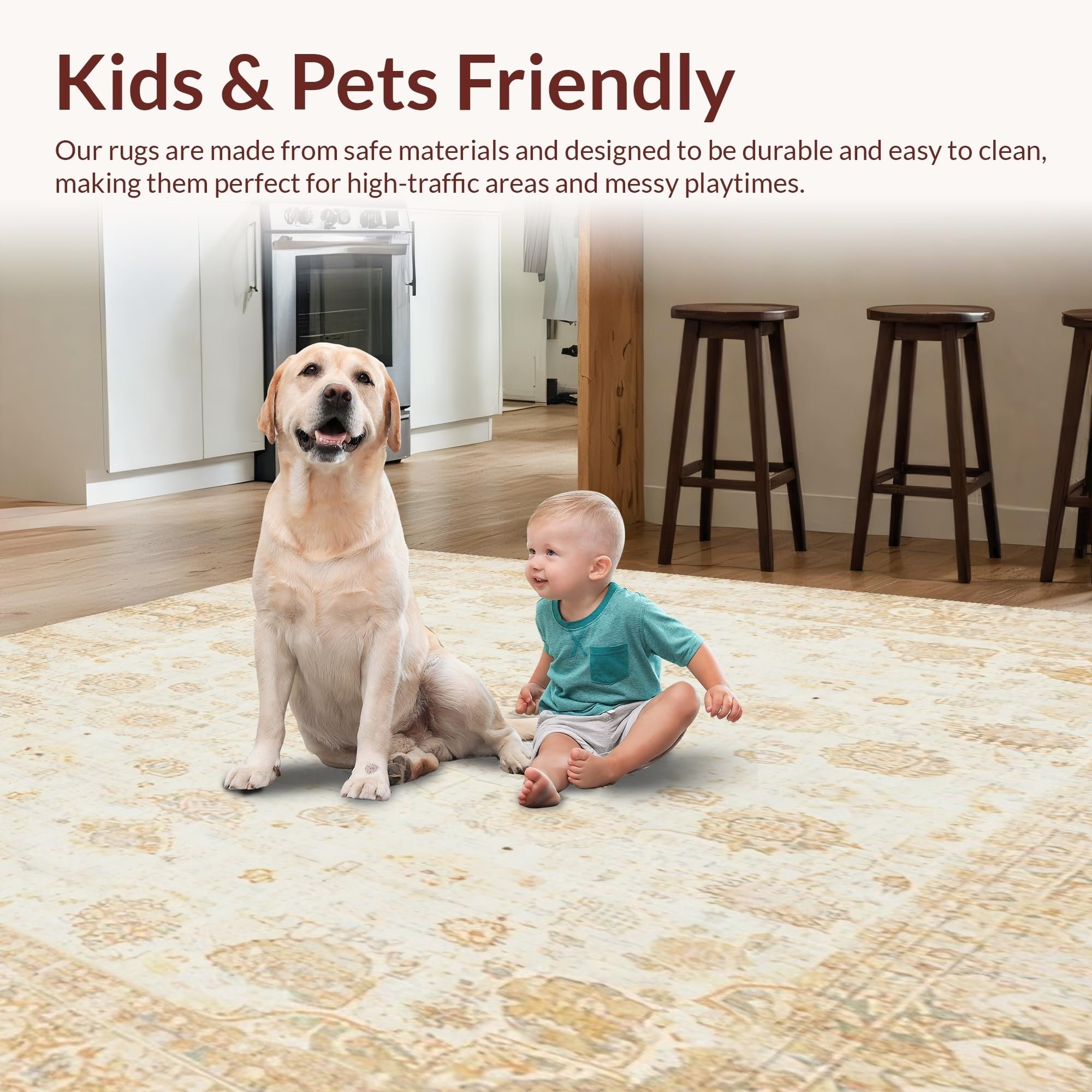 Ultra Soft Area Rug, Non Slip, Stain Resistant, Washable Area Rugs for Living Room, Bedroom, Beige Circle Vintage Distressed Print Round Indoor Accent(Beige) Overview: