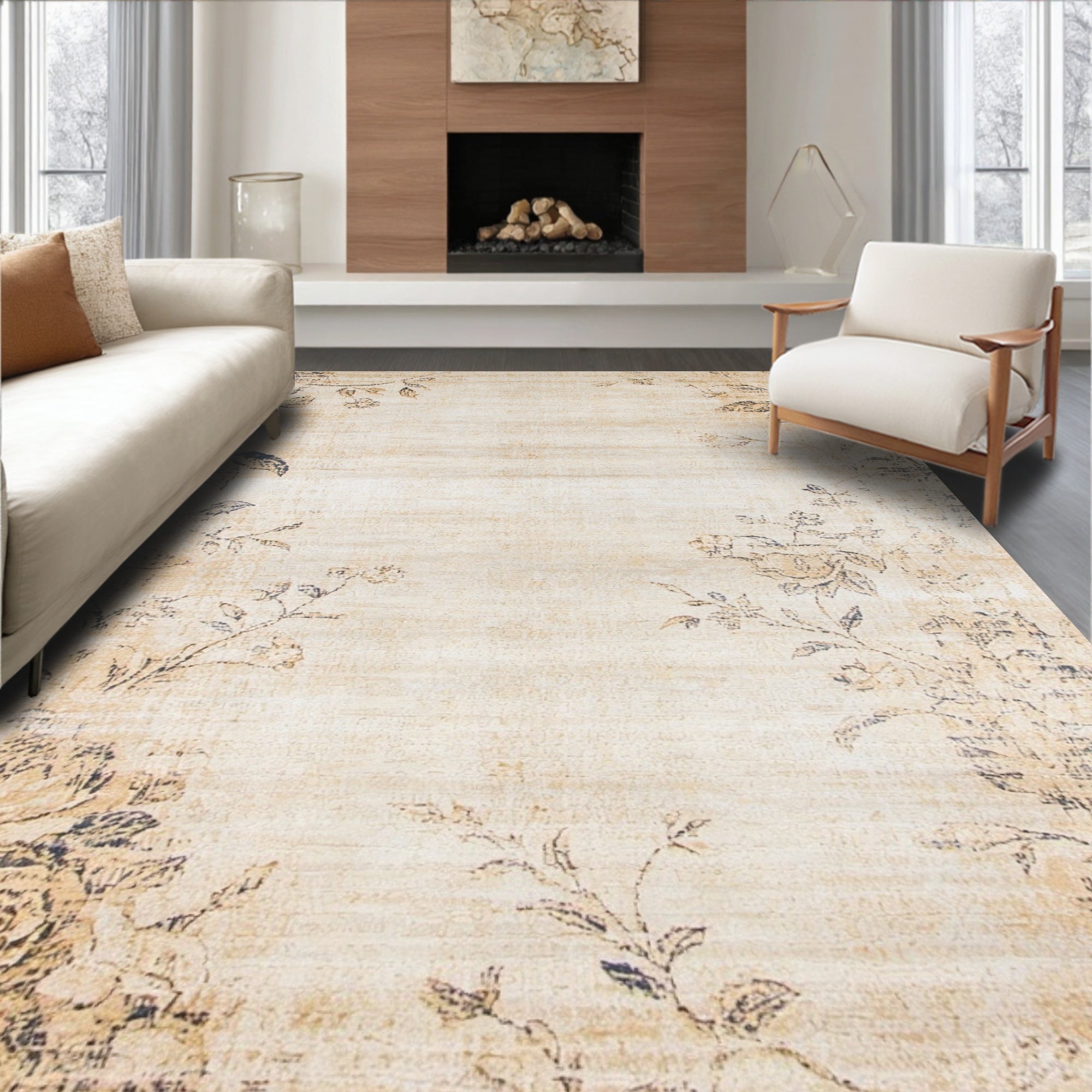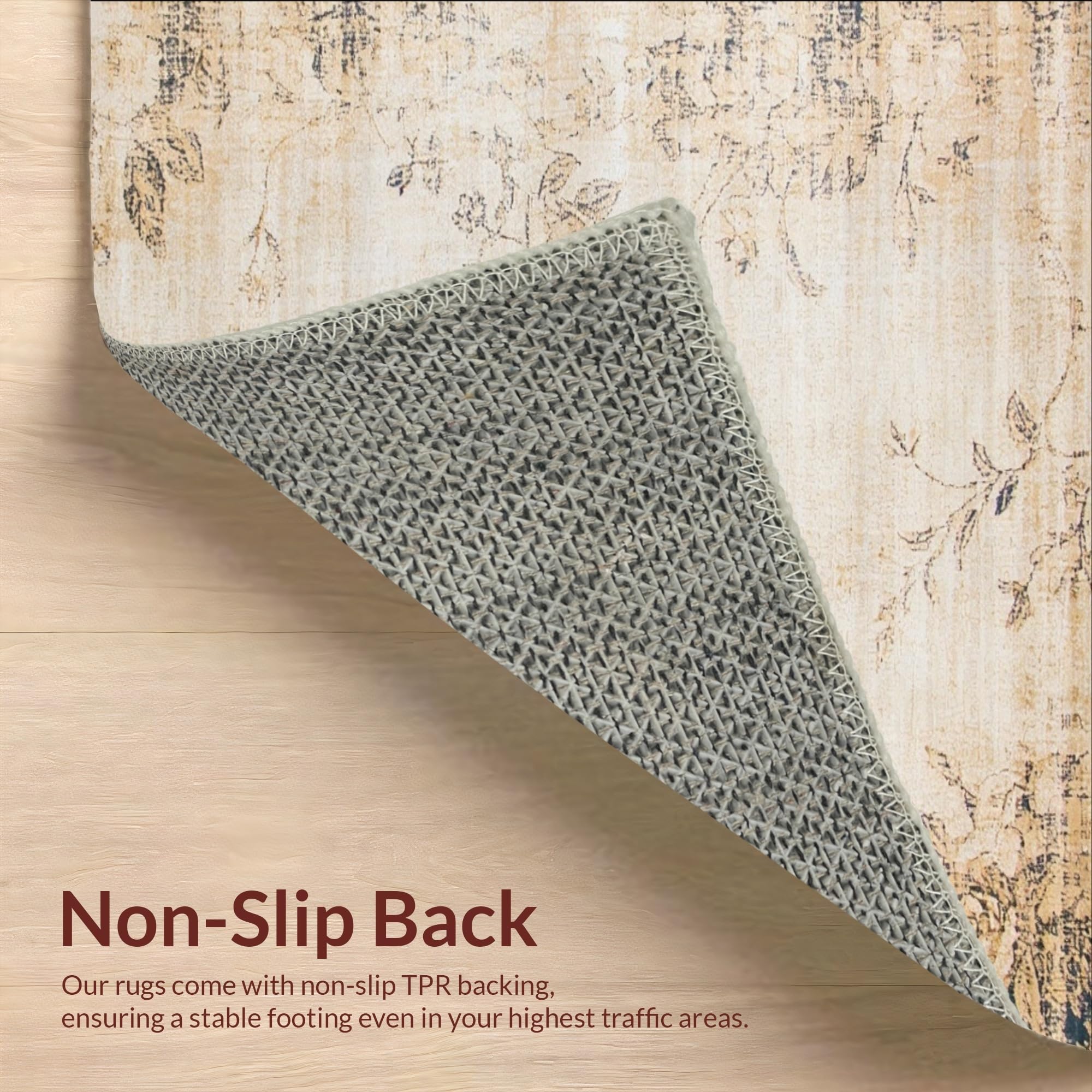 Ultra Soft Area Rug, Non Slip, Stain Resistant, Washable Area Rugs for Living Room, Bedroom, Beige Desert Bloom Distressed Floral Indoor Area(Beige) Overview: