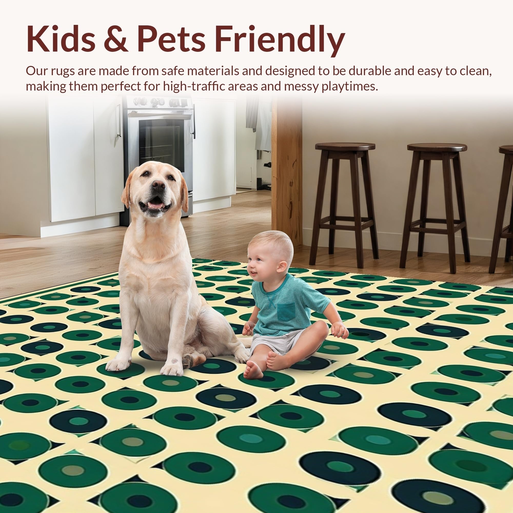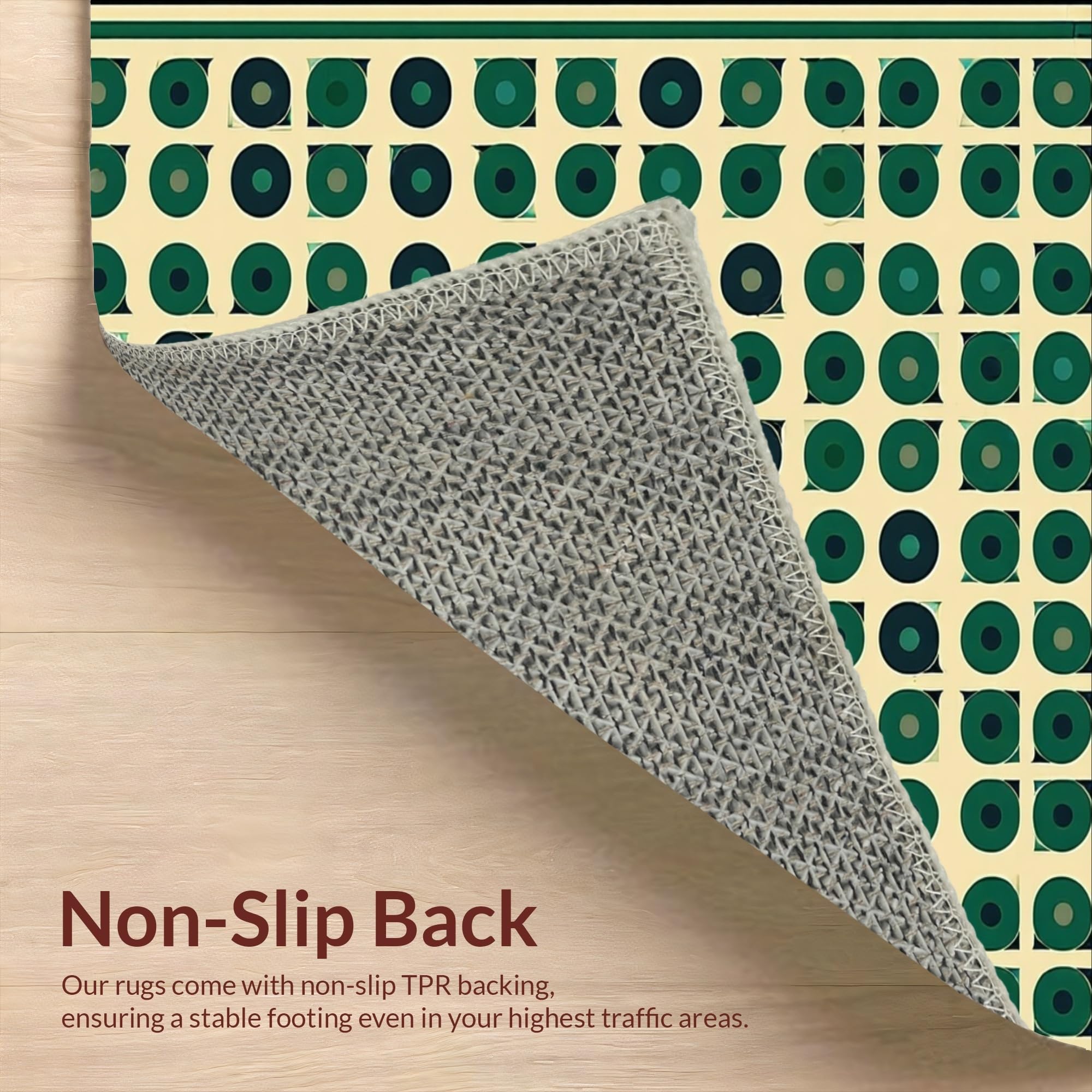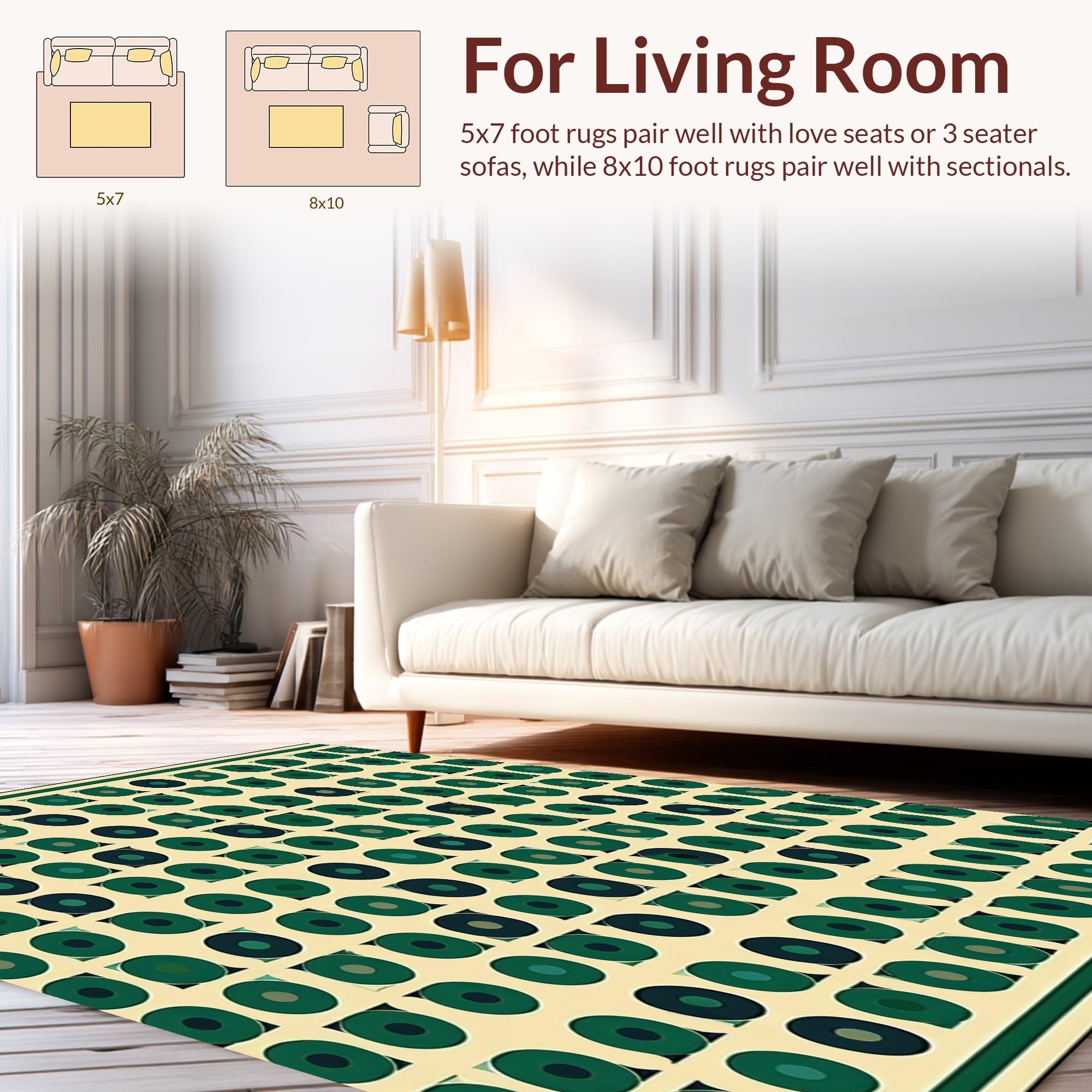 Ultra Soft Area Rug, Non Slip, Stain Resistant, Washable Area Rugs for Living Room, Bedroom, Beige Foundation Green Stylized Geometric Spotted(Green) Overview: