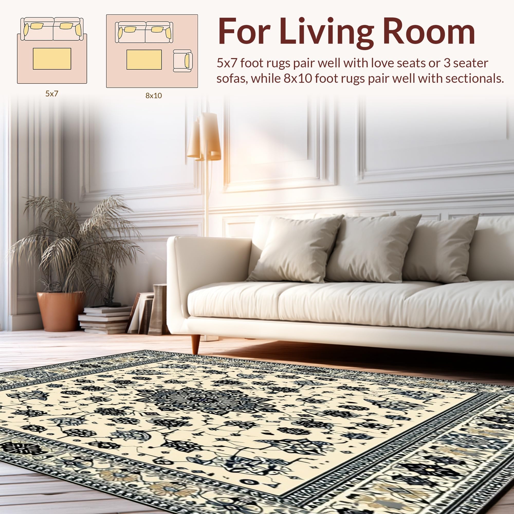 Ultra Soft Area Rug, Non Slip, Stain Resistant, Washable Area Rugs for Living Room, Bedroom, Beige Fusion Area Abstract Design(Beige) Overview: