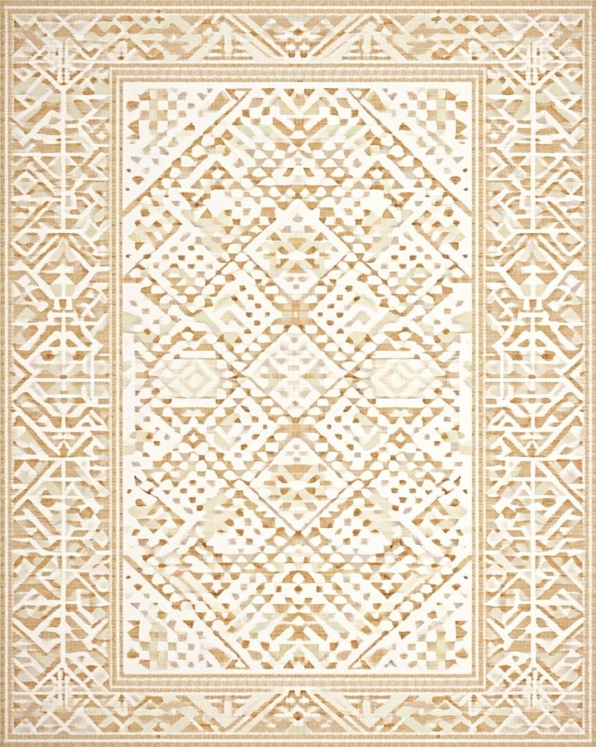 Ultra Soft Area Rug, Non Slip, Stain Resistant, Washable Area Rugs for Living Room, Bedroom, Beige Ivory Abstract Diamond Area(Beige) Overview: