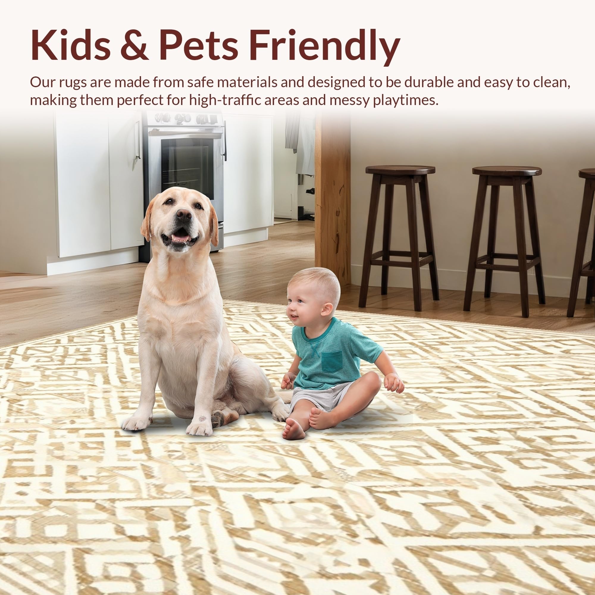 Ultra Soft Area Rug, Non Slip, Stain Resistant, Washable Area Rugs for Living Room, Bedroom, Beige Ivory Area with Elegant Diamond Trellis Design(Beige) Overview: