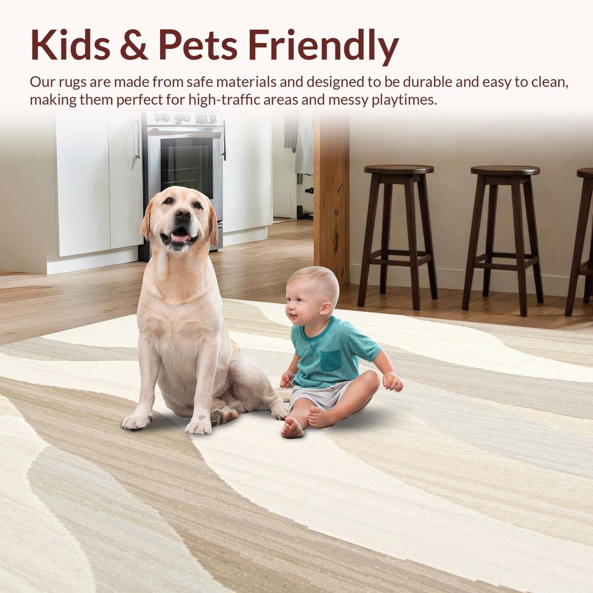 Ultra Soft Area Rug, Non Slip, Stain Resistant, Washable Area Rugs for Living Room, Bedroom, Beige Kitchen with Slip Resistant Backing and Padded Surface(Beige) Overview:
