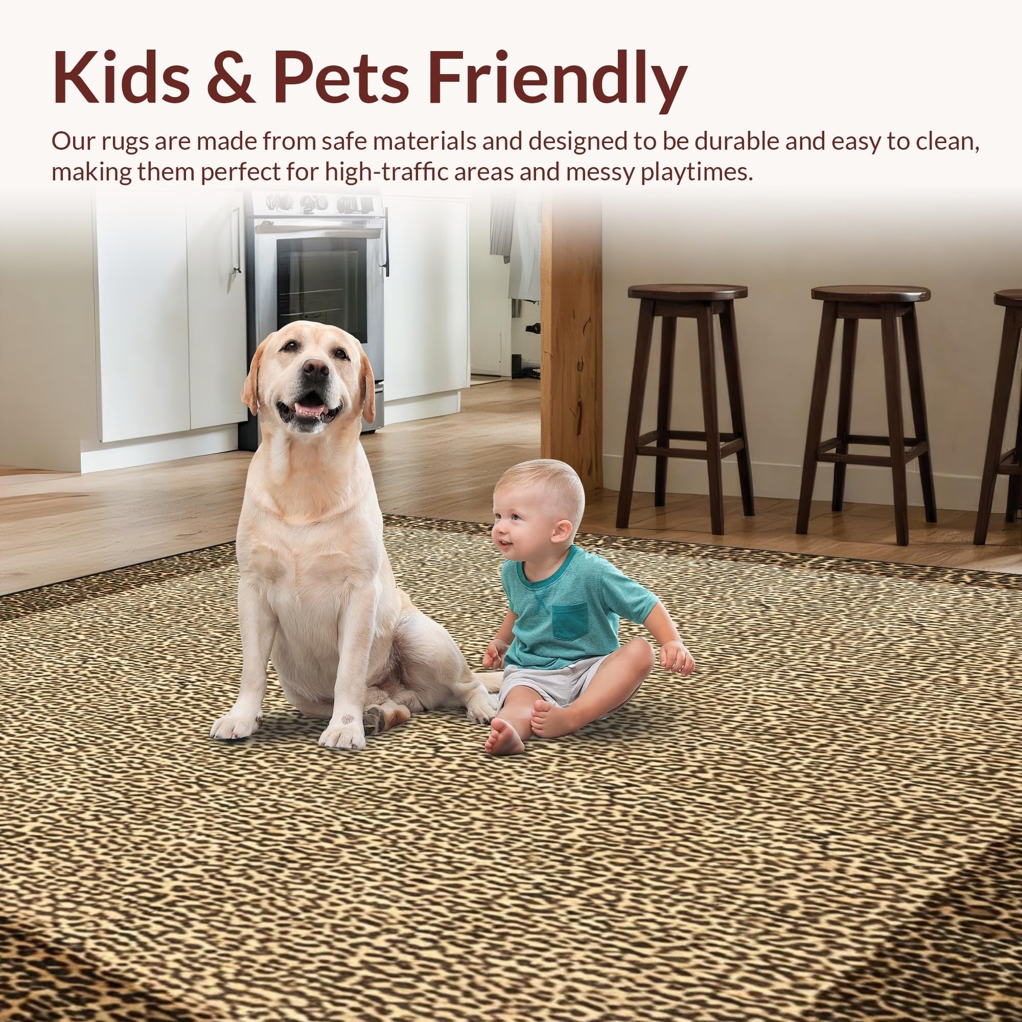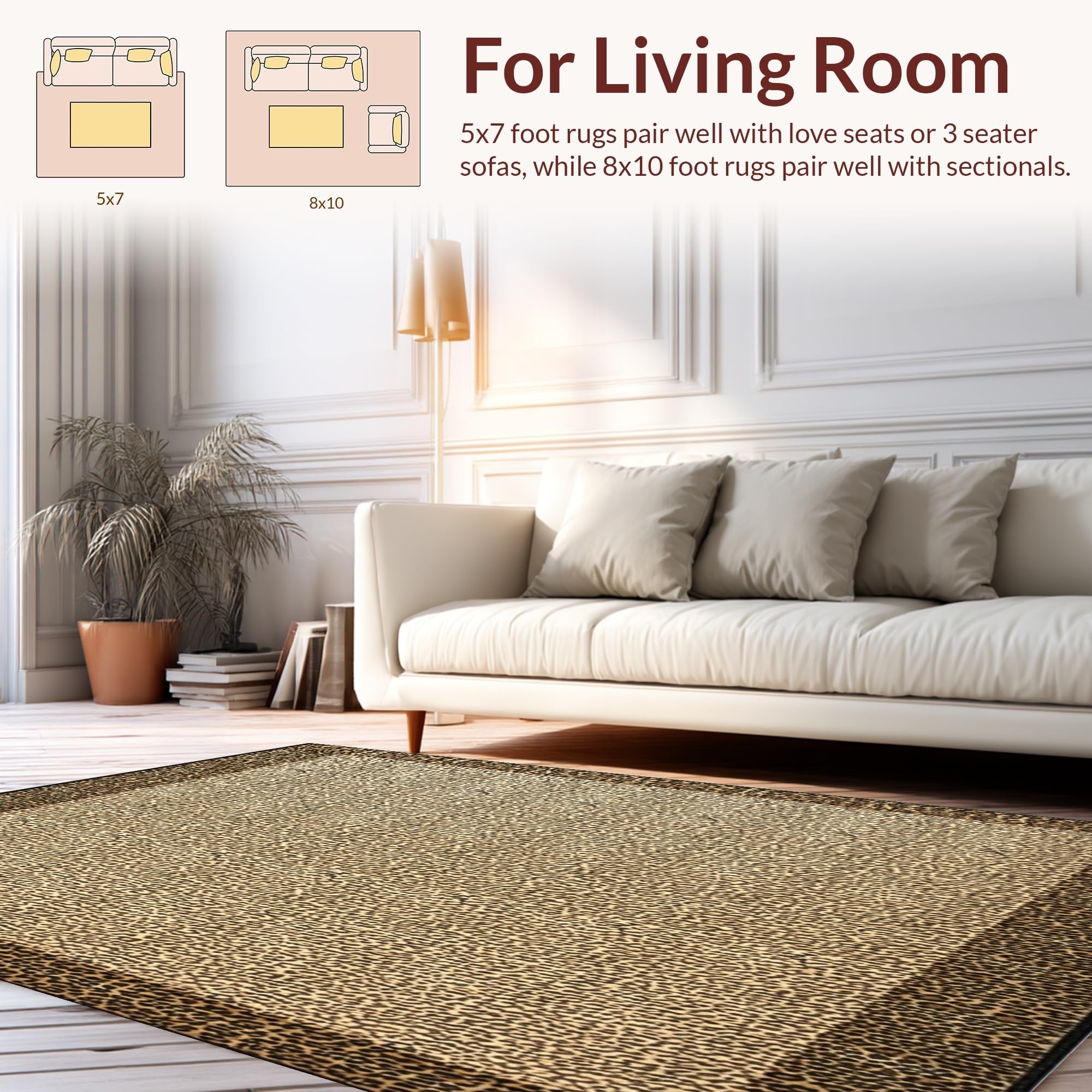 Ultra Soft Area Rug, Non Slip, Stain Resistant, Washable Area Rugs for Living Room, Bedroom, Beige Leopard Spot Area Modern Large Non Shedding(Beige) Overview: