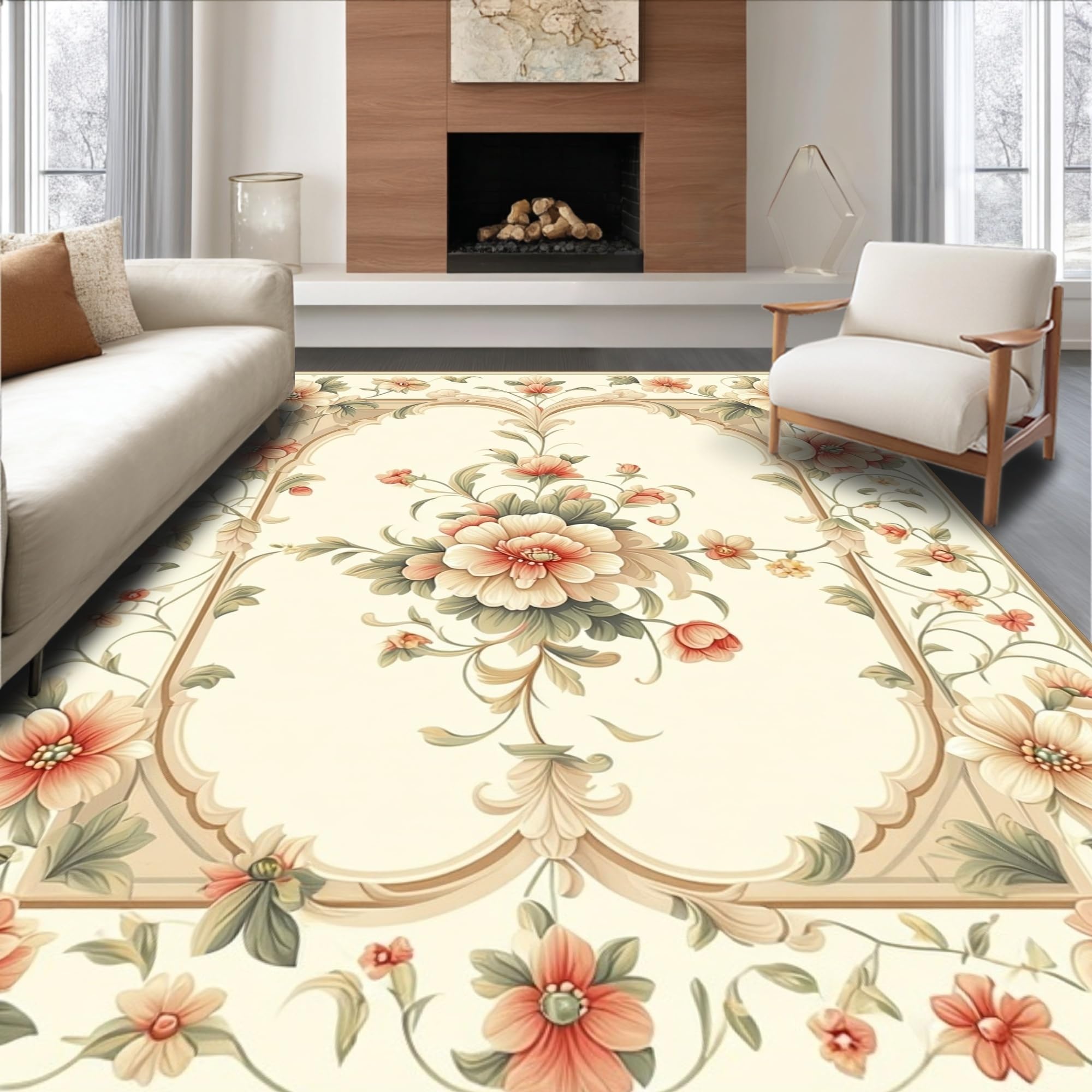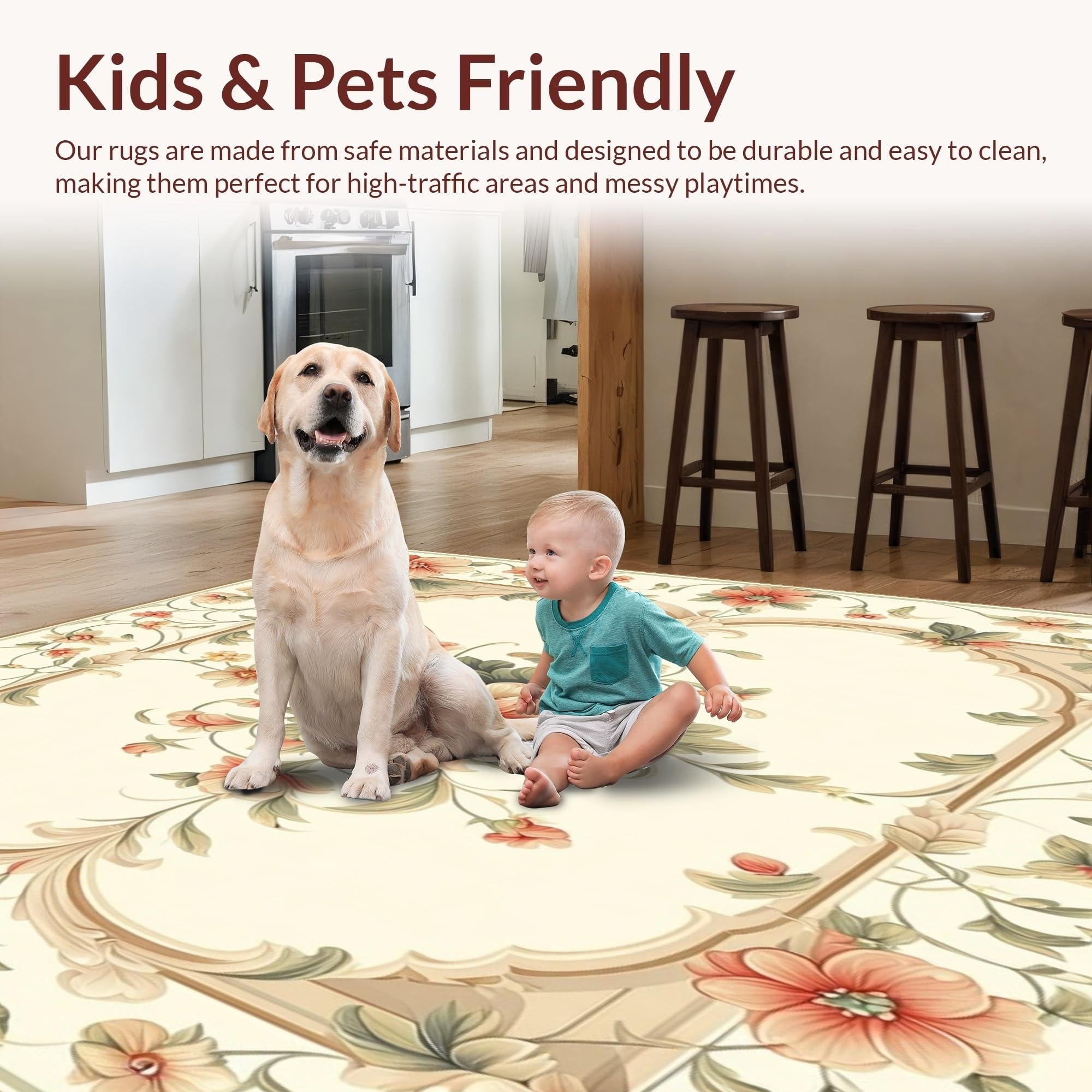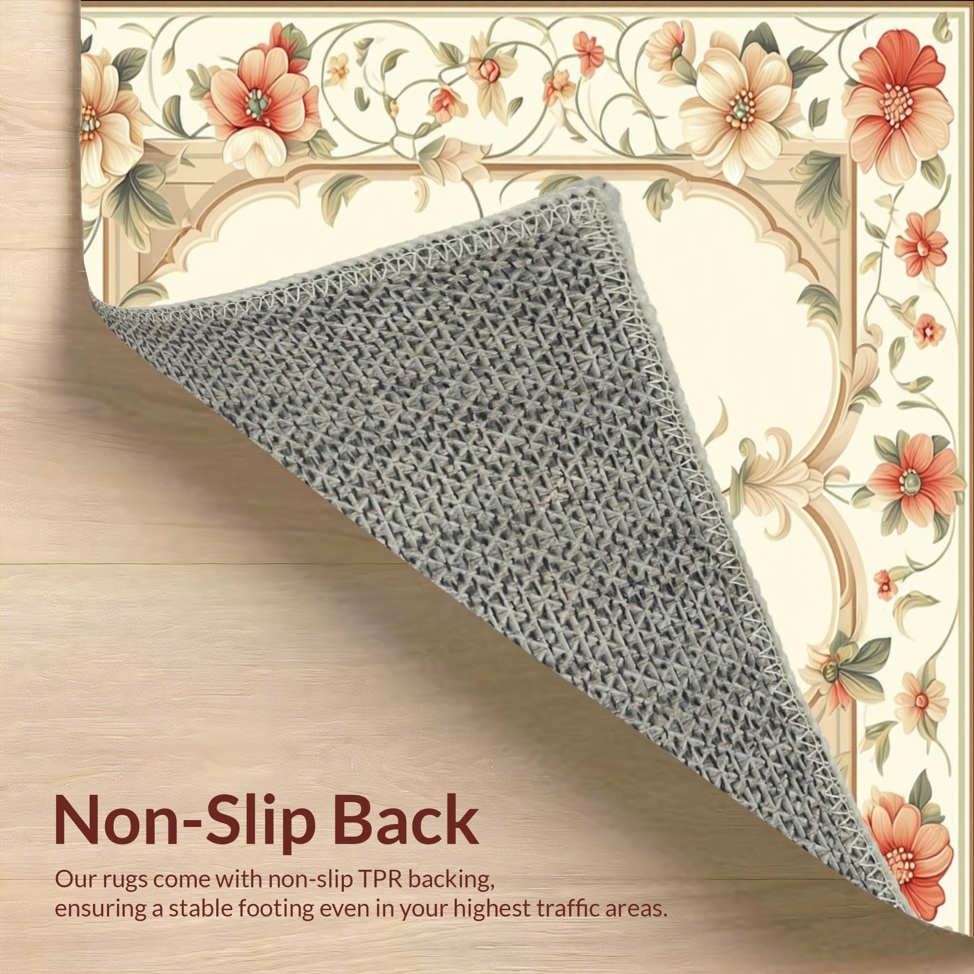 Ultra Soft Area Rug, Non Slip, Stain Resistant, Washable Area Rugs for Living Room, Bedroom, Beige Muslim Prayer Mat with Ornamental Floral Medallion and Classic Symmetry(Beige) Overview:
