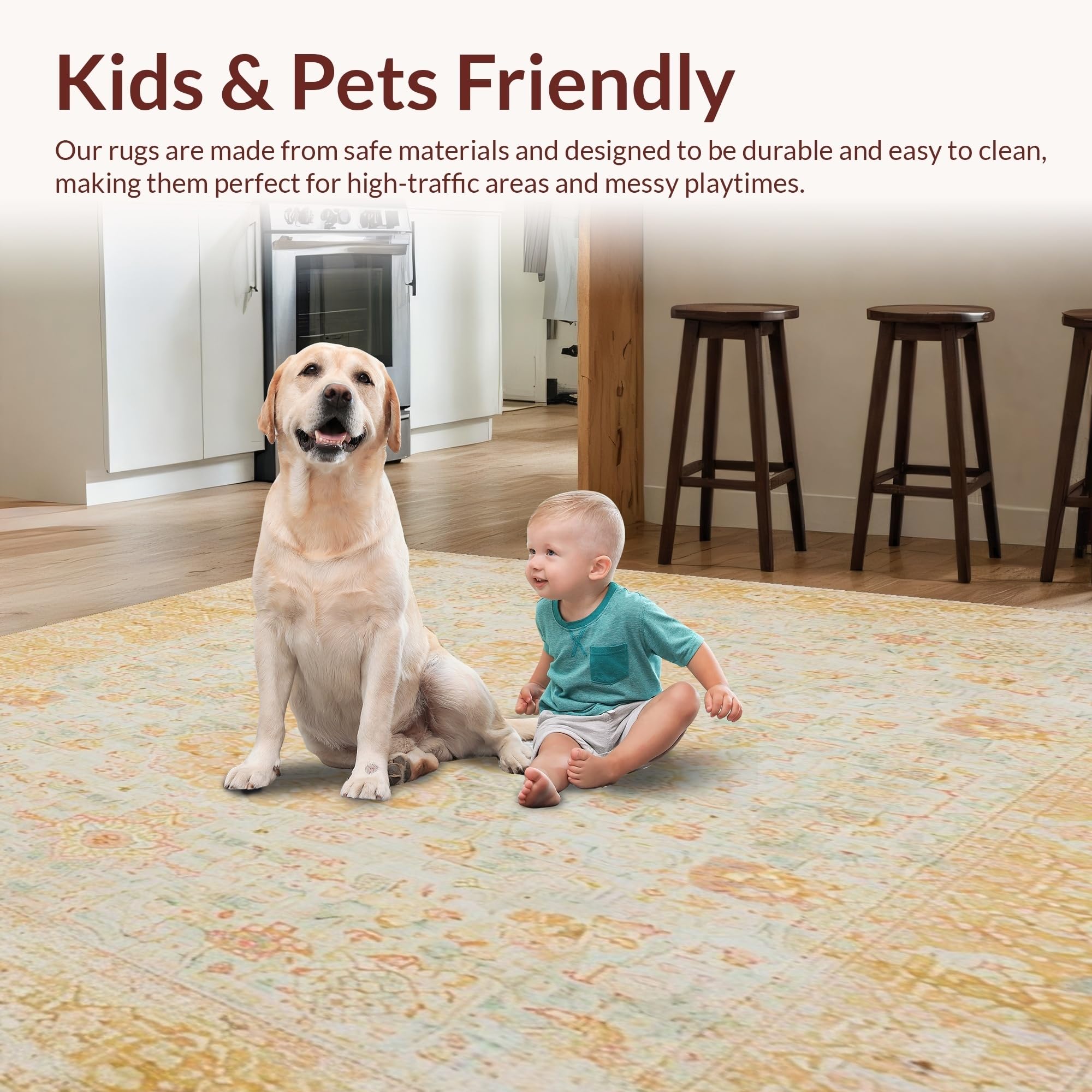 Ultra Soft Area Rug, Non Slip, Stain Resistant, Washable Area Rugs for Living Room, Bedroom, Beige Vintage Look Area Sand Tones Classic Distressed(Beige) Overview: