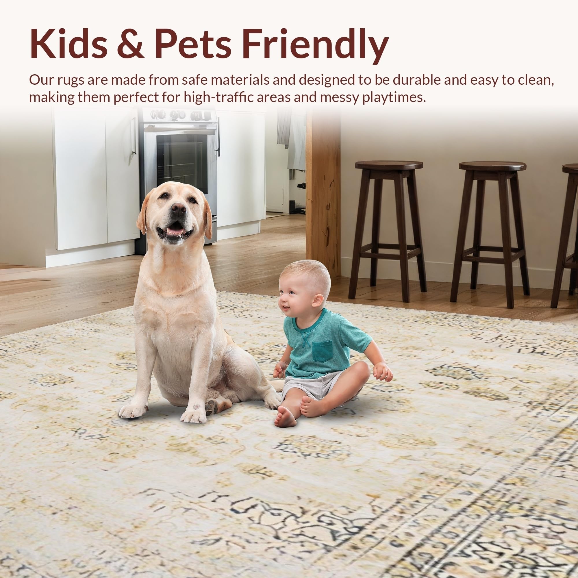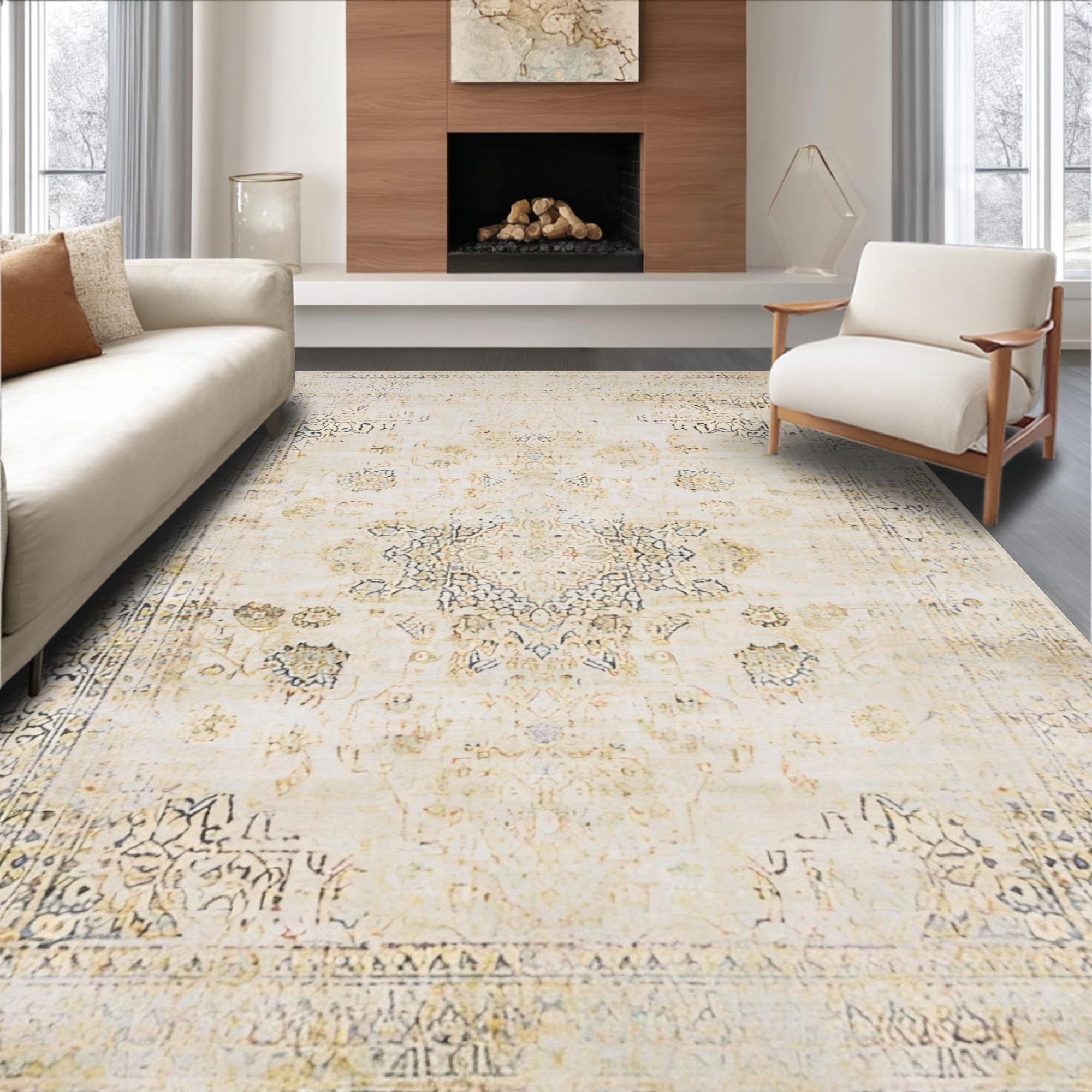 Ultra Soft Area Rug, Non Slip, Stain Resistant, Washable Area Rugs for Living Room, Bedroom, Beige Vintage Style Low Pile Accent(Beige) Overview: