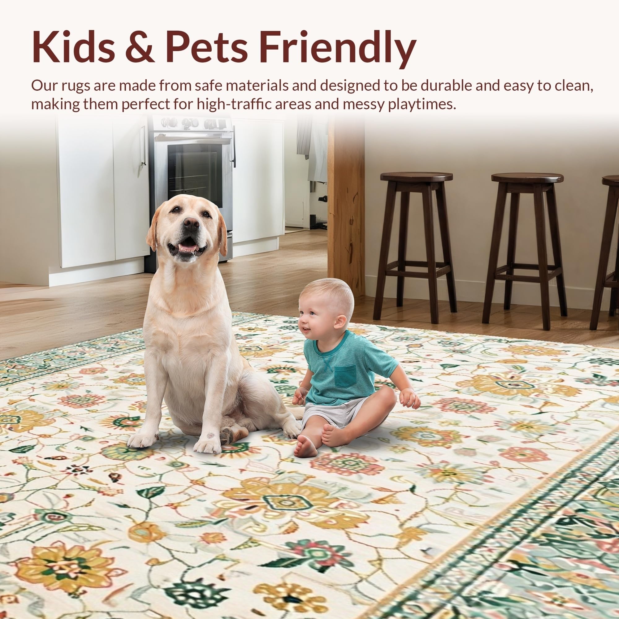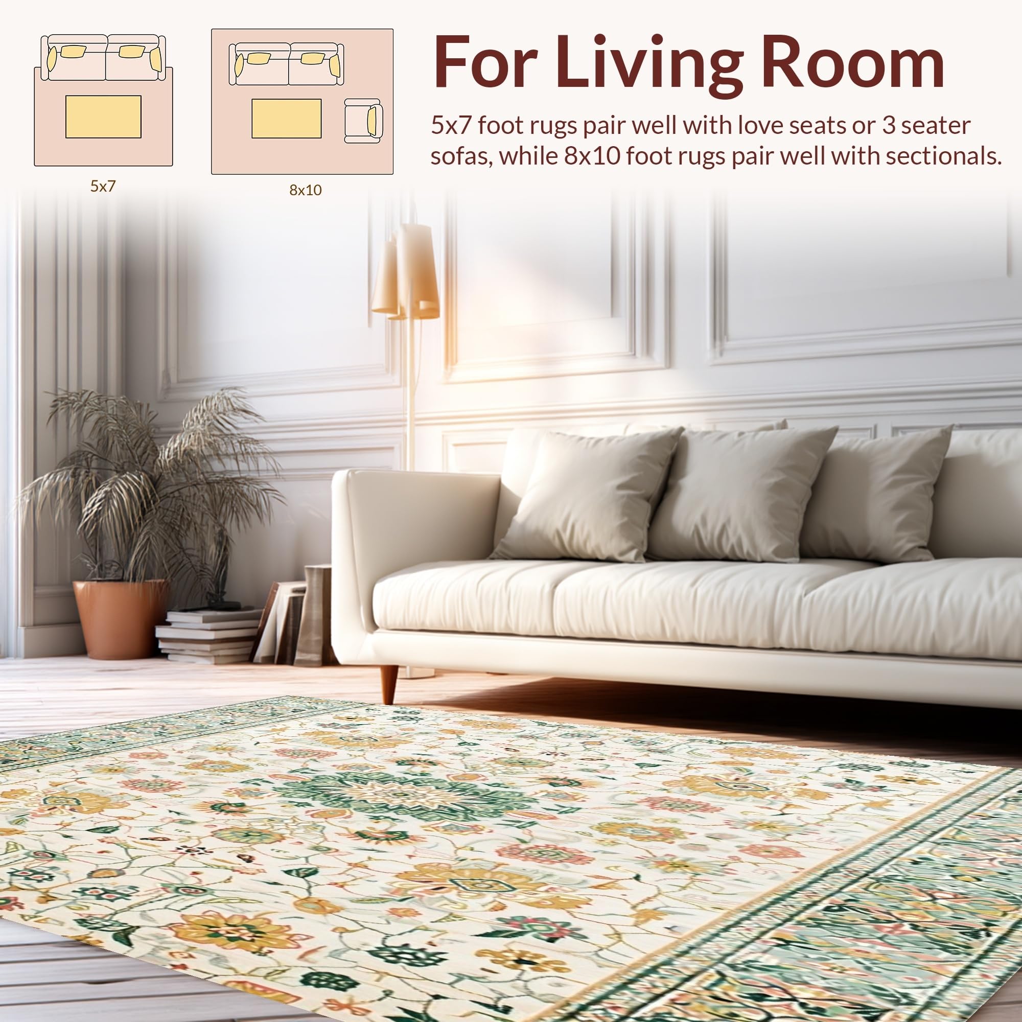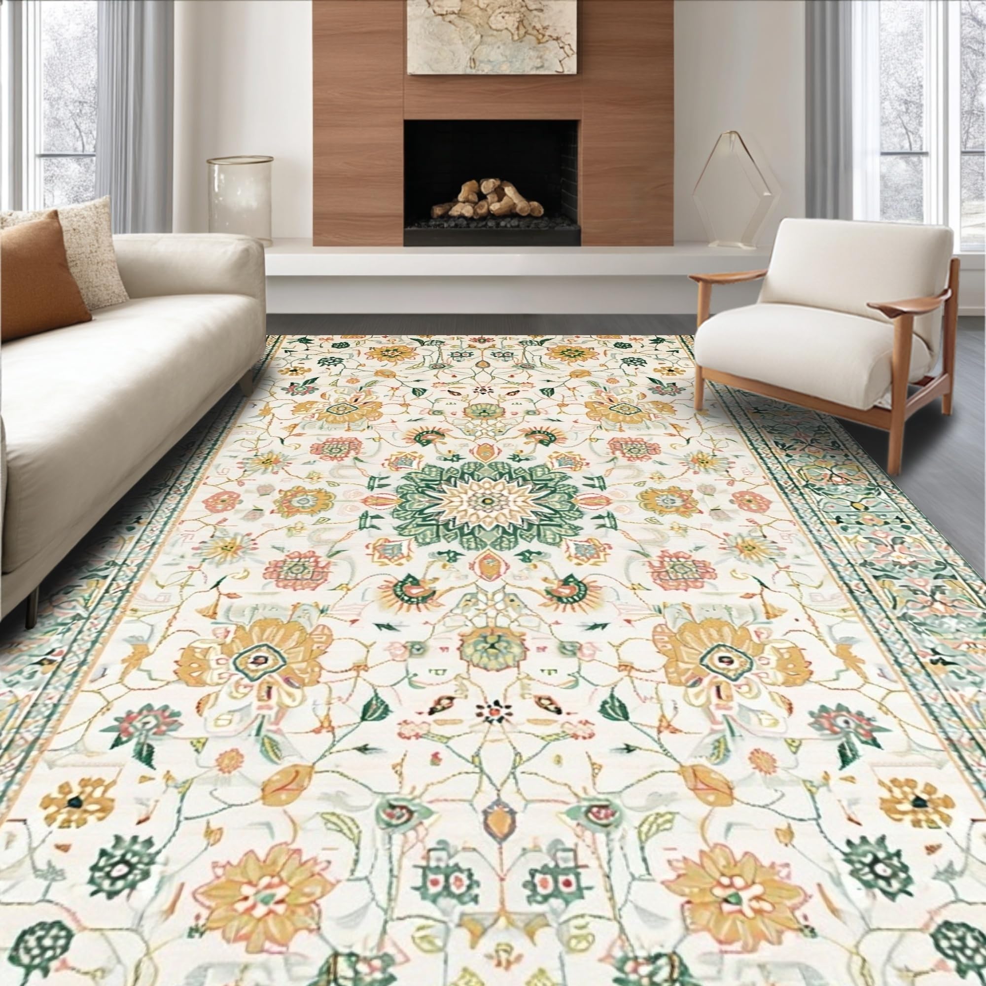 Ultra Soft Area Rug, Non Slip, Stain Resistant, Washable Area Rugs for Living Room, Bedroom, Beige with Abstract Floral Motifs(Ivory) Overview: