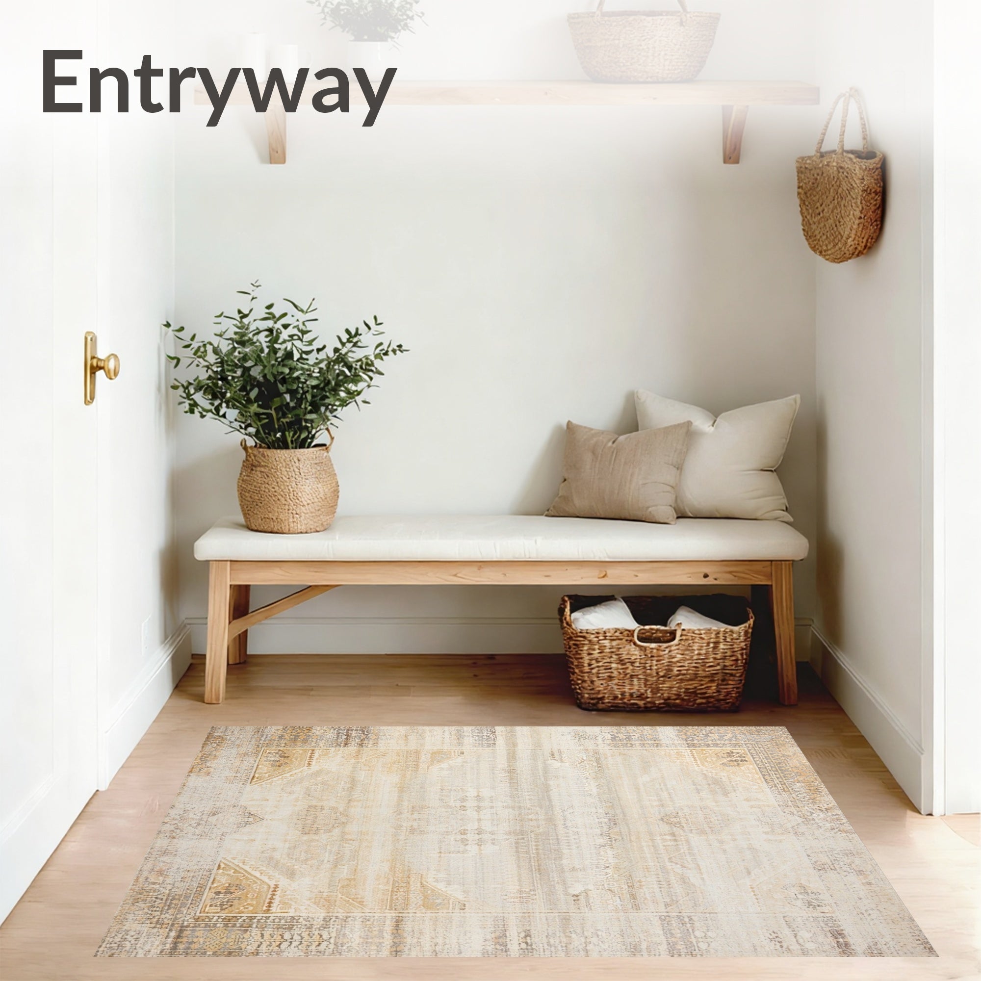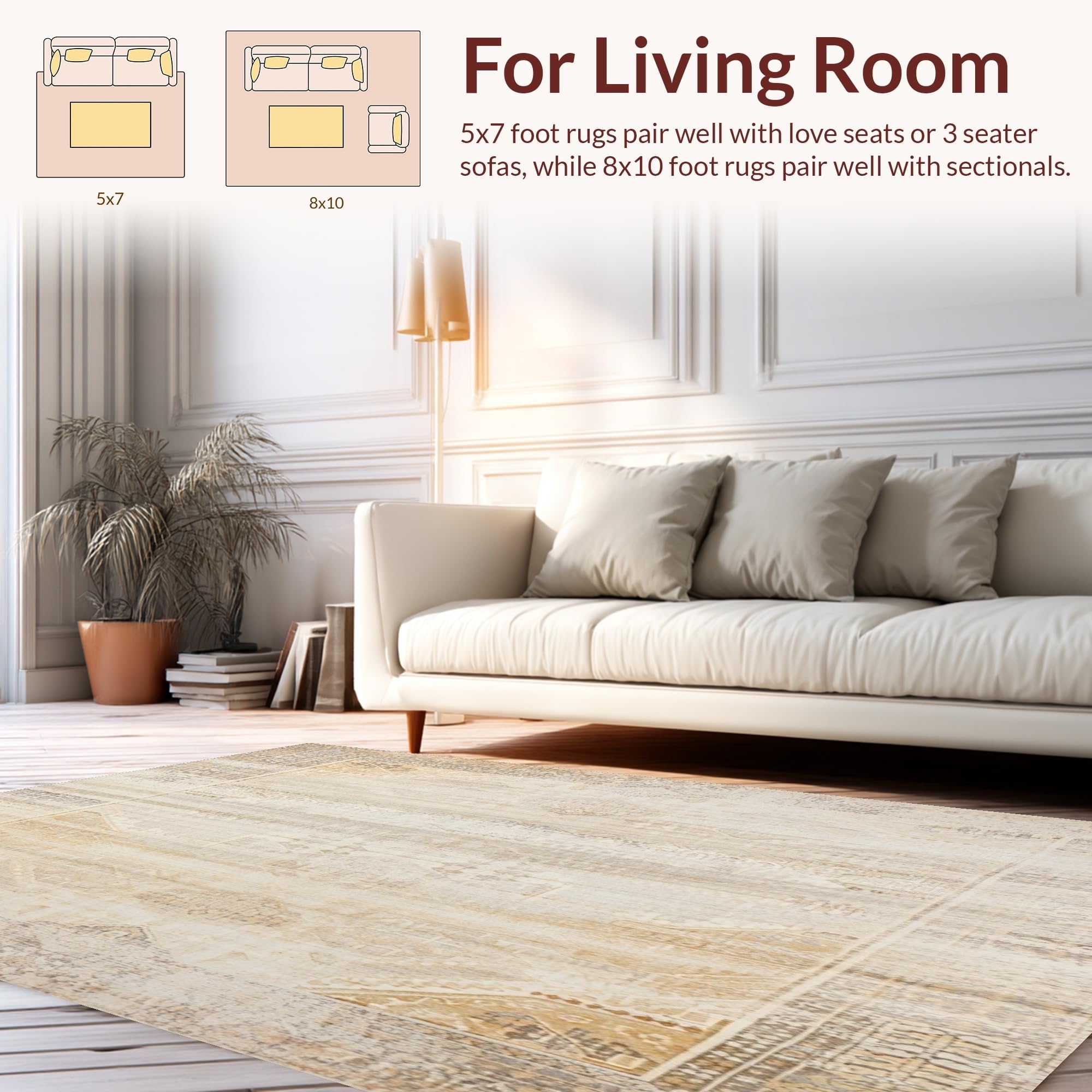 Ultra Soft Area Rug, Non Slip, Stain Resistant, Washable Area Rugs for Living Room, Bedroom, Beige with Vintage Inspired Patchwork and Muted Earthy Accents(Beige) Overview: