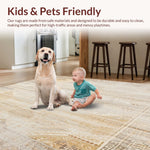 - Soft and Fluffy Comfort: This low pile rug is made from a faux cashmere texture, offering a smooth, soft touch that elevates any room. Ideal for areas where comfort matters without compromising on easy maintenance.