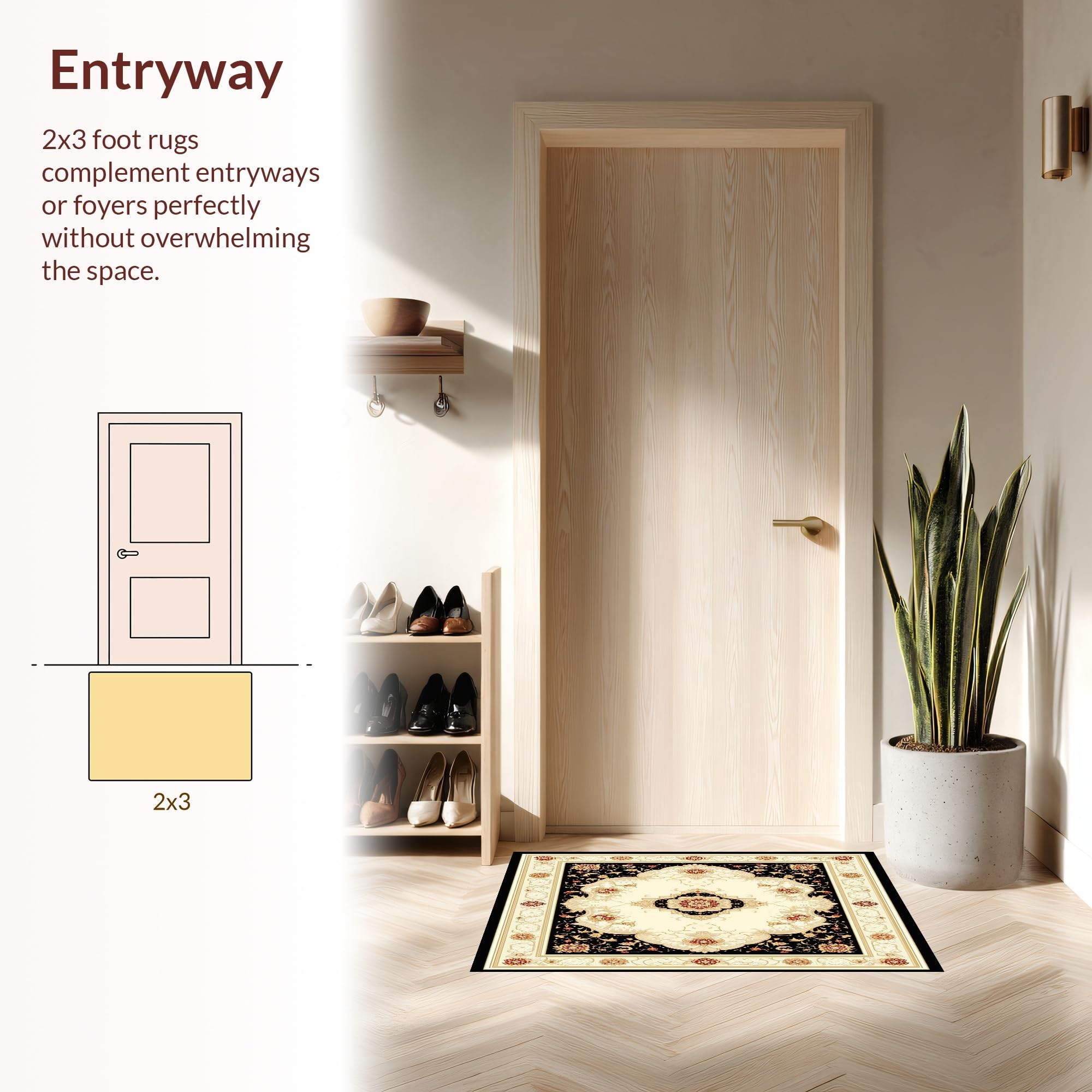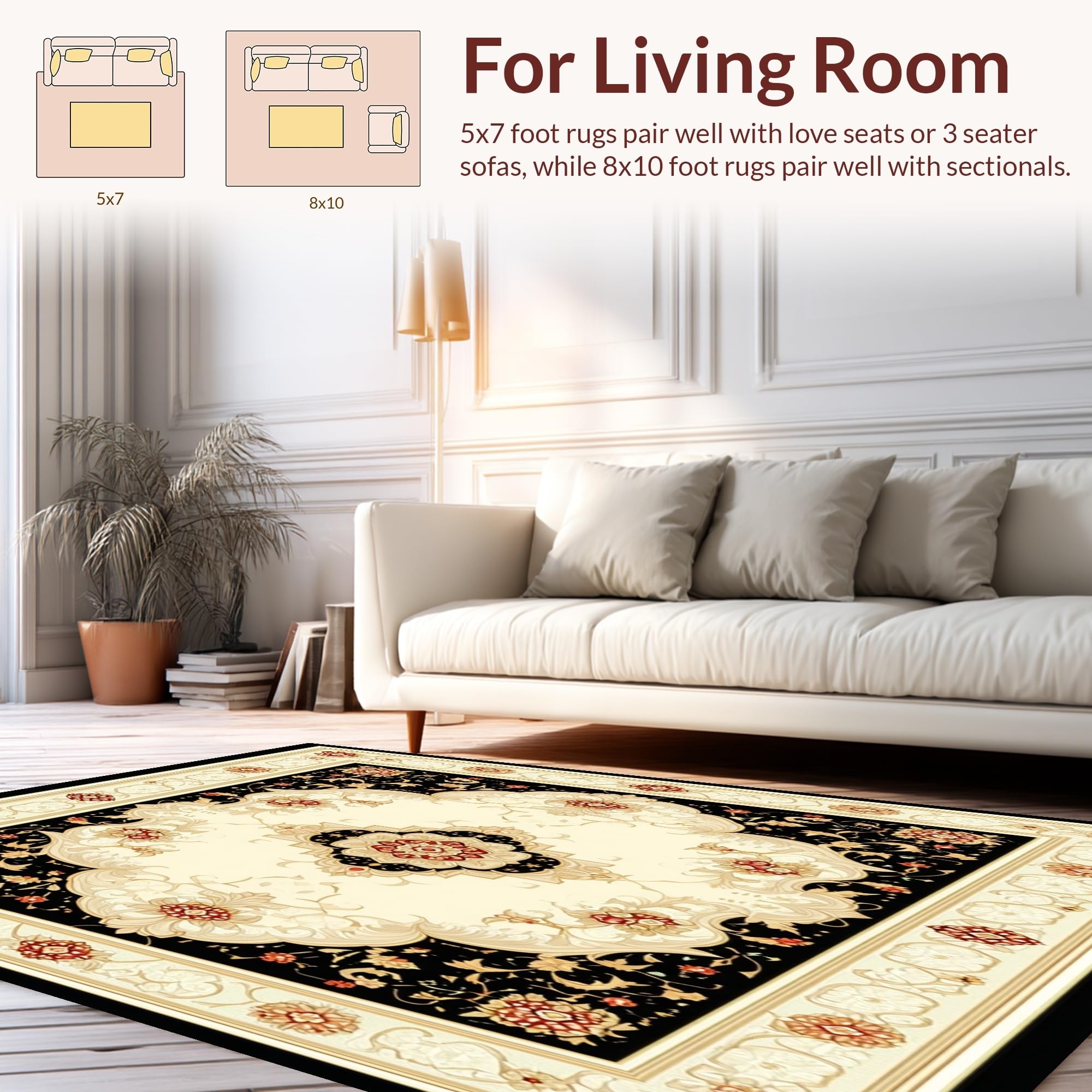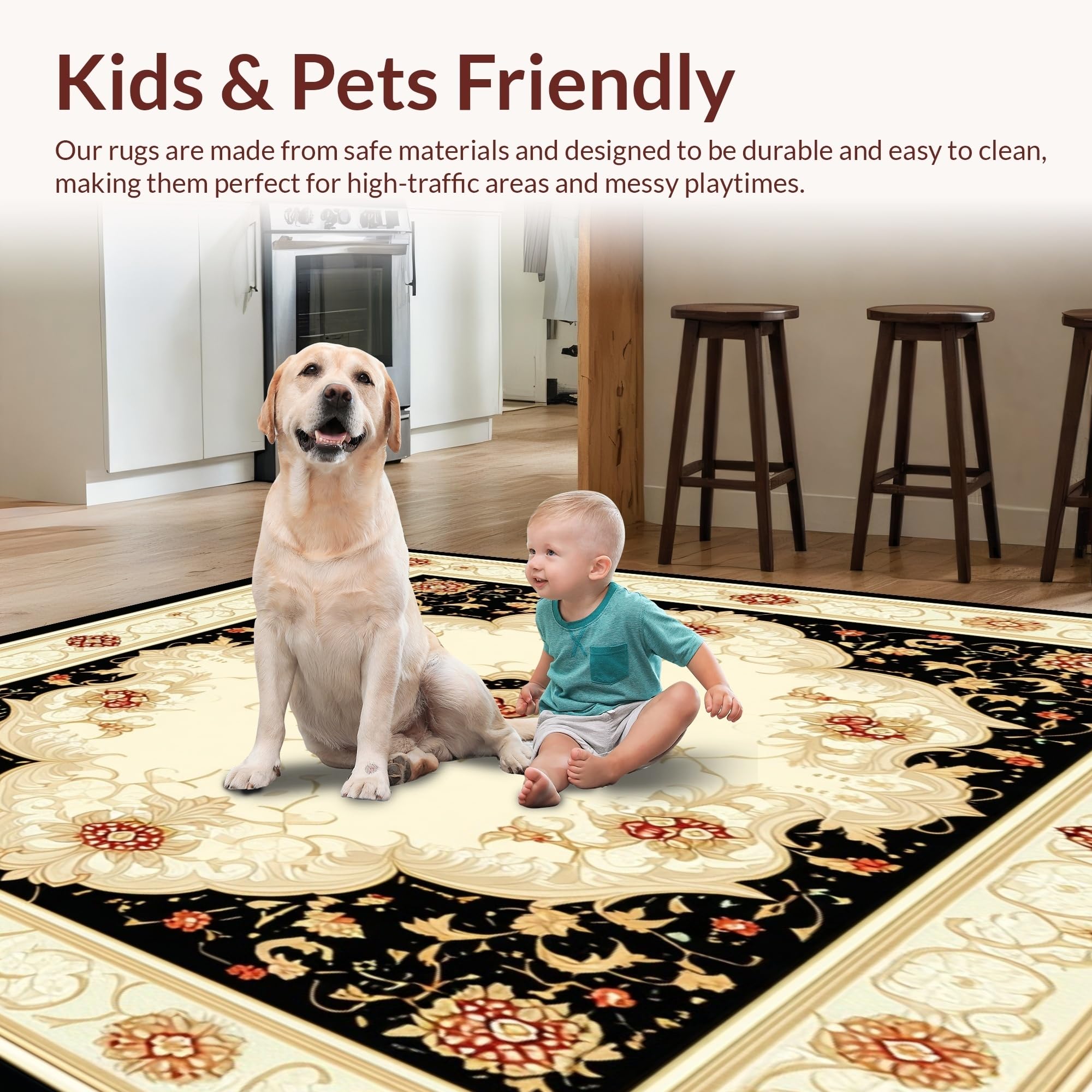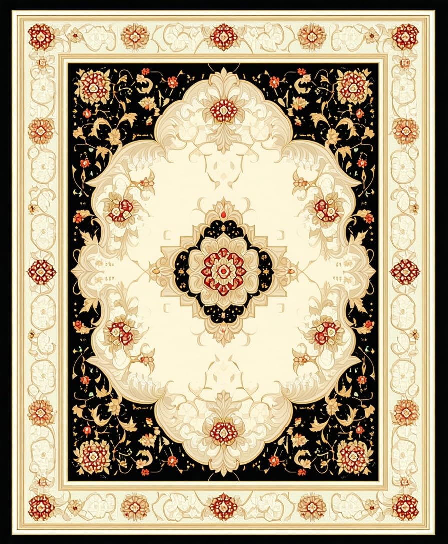 Ultra Soft Area Rug, Non Slip, Stain Resistant, Washable Area Rugs for Living Room, Bedroom, Black and Beige Oriental with Intricate Medallion Scrollwork(Beige) Overview: