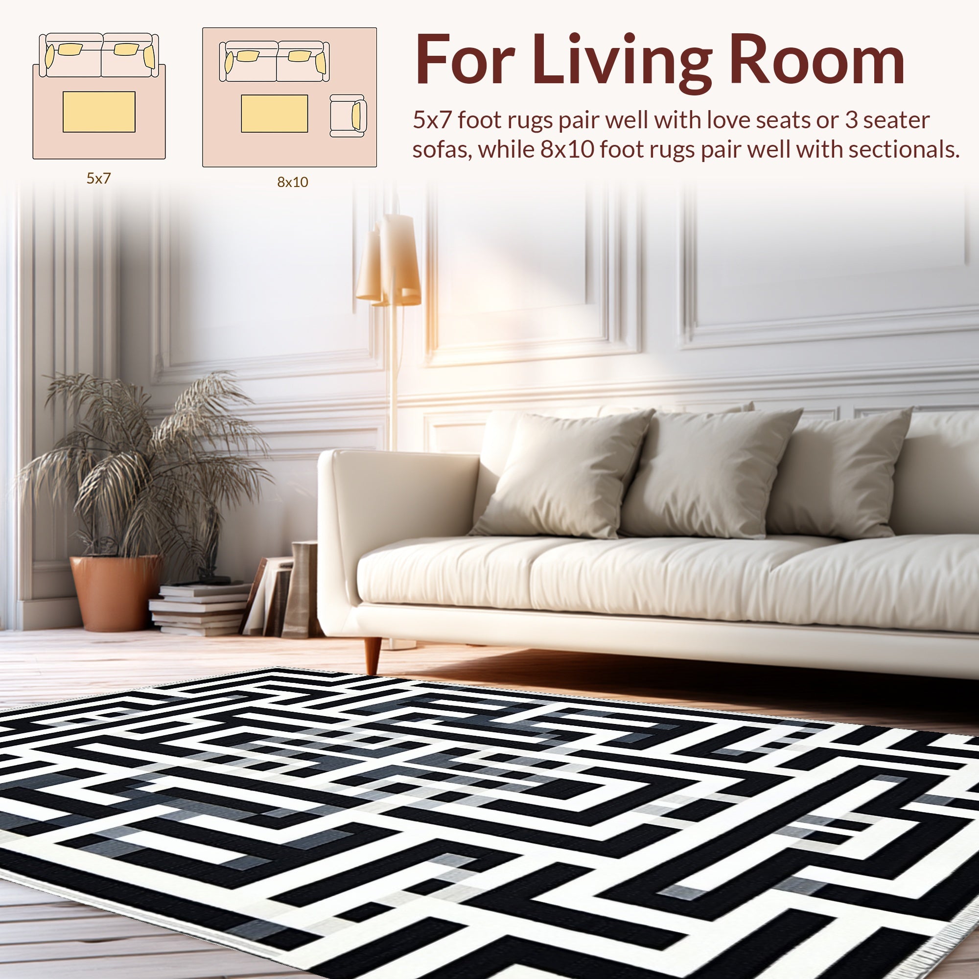 Ultra Soft Area Rug, Non Slip, Stain Resistant, Washable Area Rugs for Living Room, Bedroom, Black & White Zigzag(Gray) Overview: