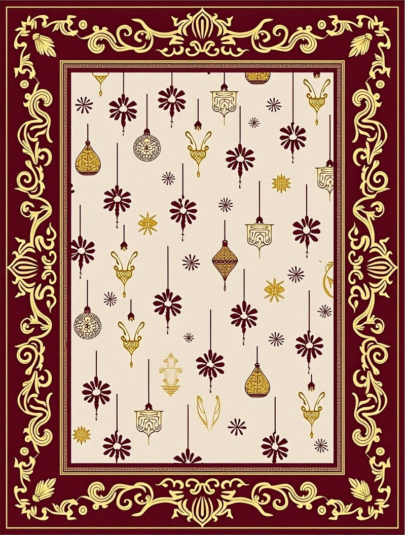 Blinking Paw Print Vacation Theme Floor with Ornament(Burgundy)