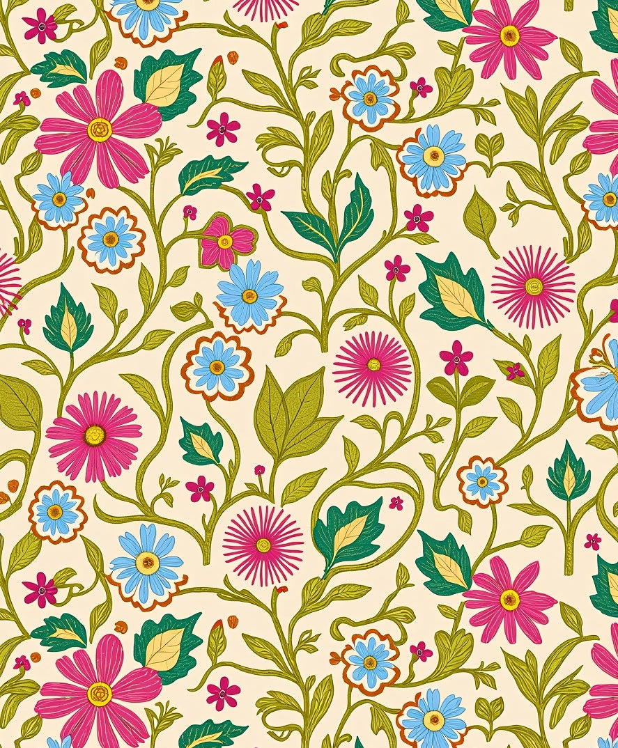 Blooming Meadow Floral Vine Tapestry(Pink)