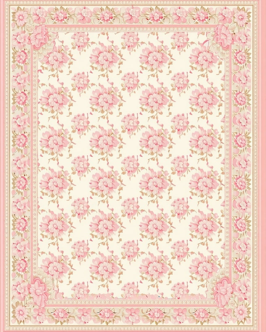 Blush Scallop Rosette Accent Area Floral Motif(Ivory)