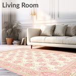 Ultra Soft Area Rug, Non Slip, Stain Resistant, Washable Area Rugs for Living Room, Bedroom, Blush Scallop Rosette Accent Area Floral Motif(Ivory) Overview: