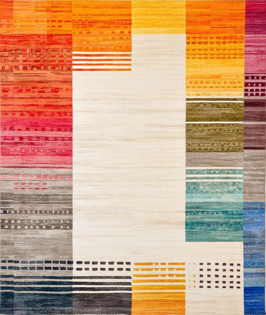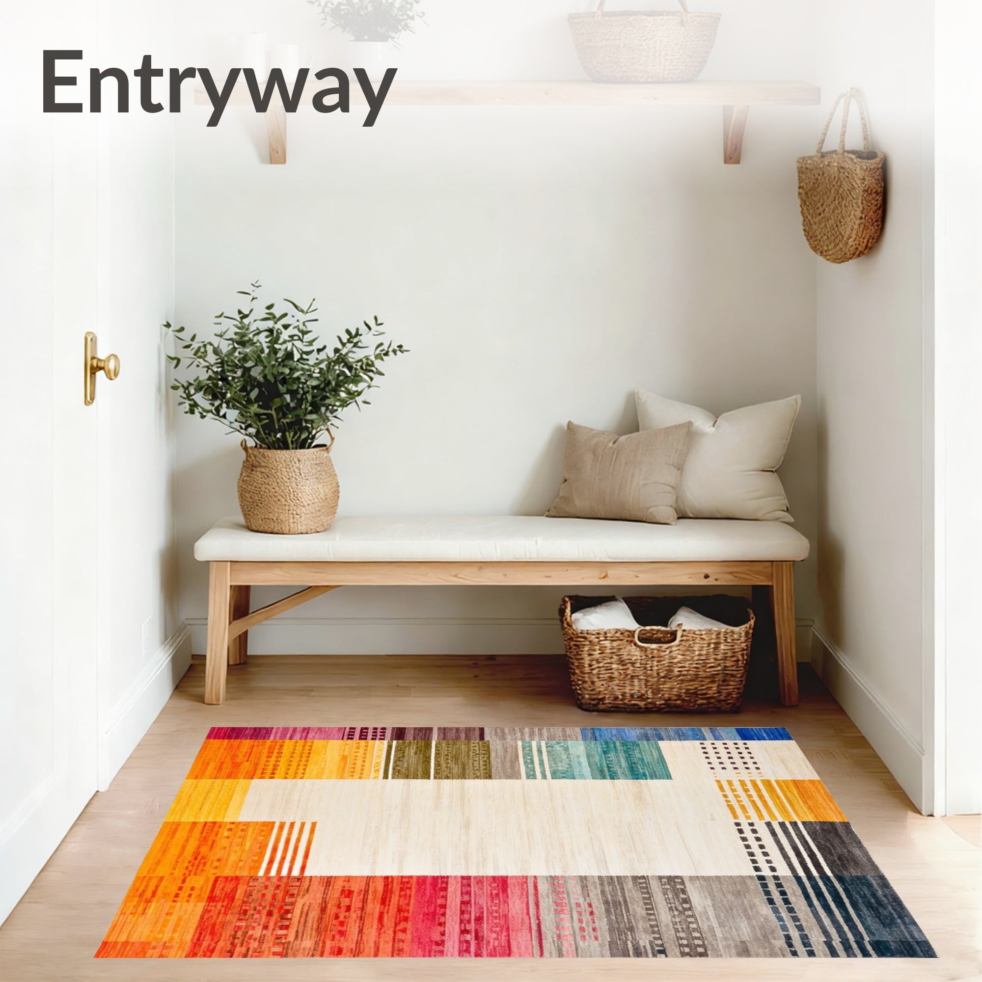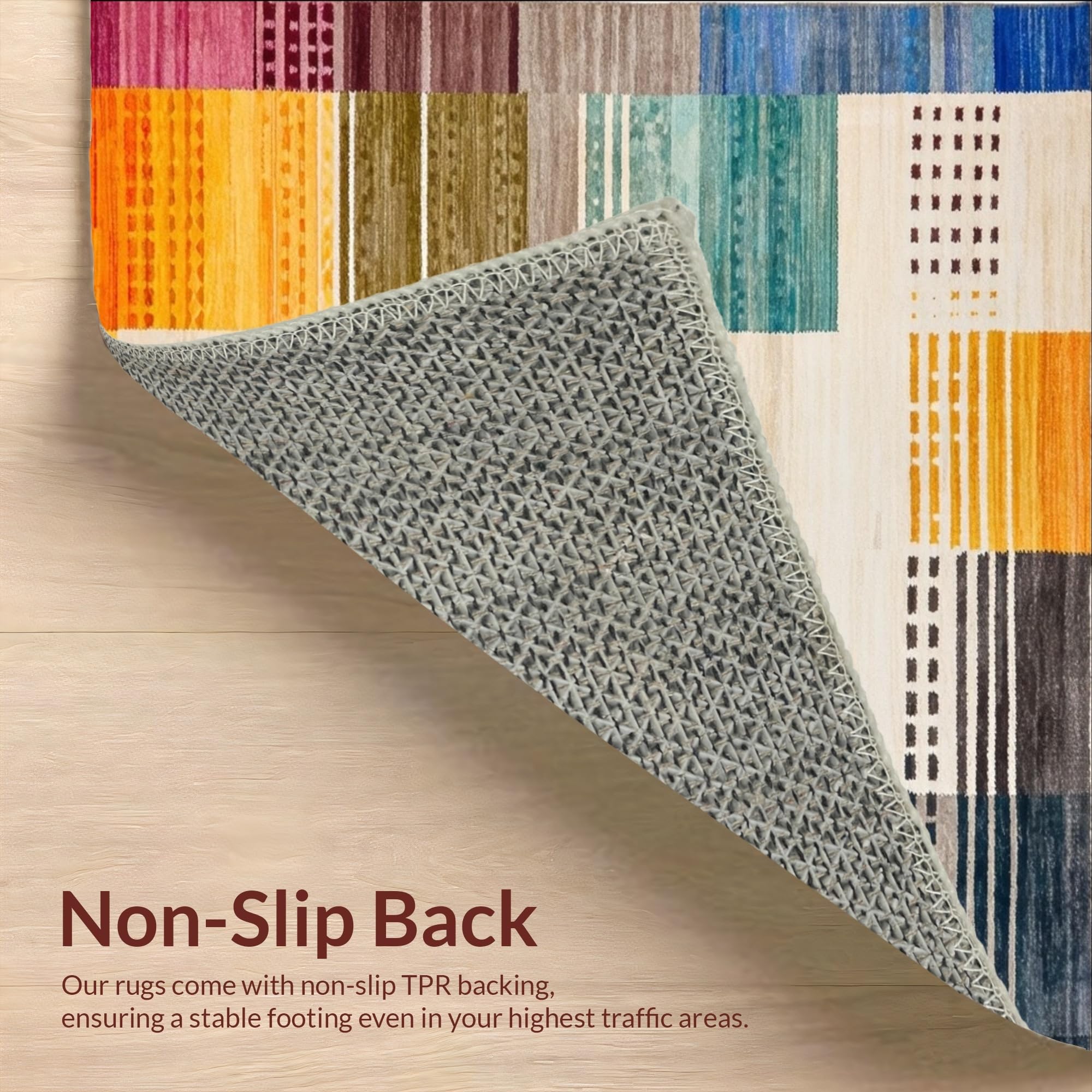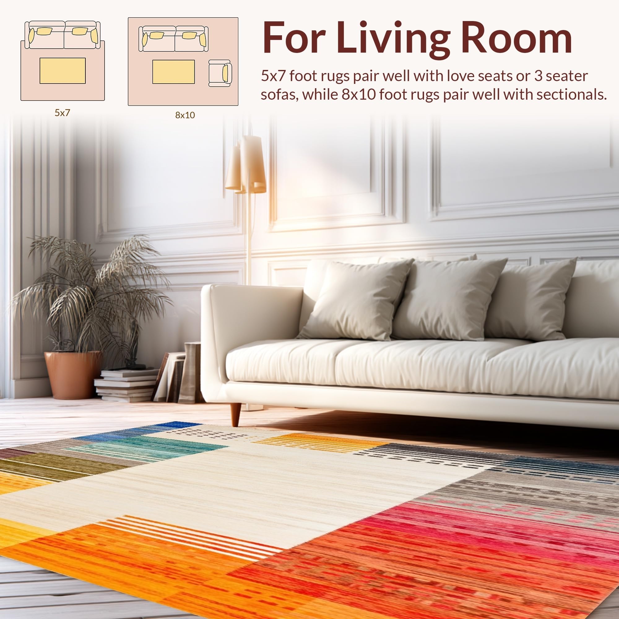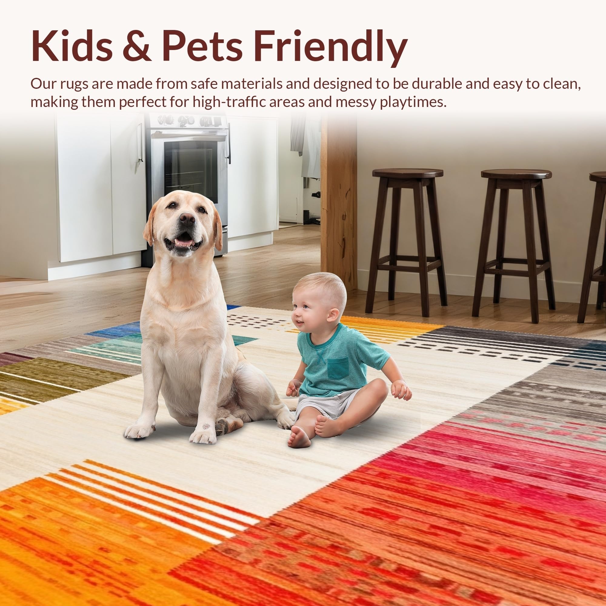 Ultra Soft Area Rug, Non Slip, Stain Resistant, Washable Area Rugs for Living Room, Bedroom, Boho Chic Area with Colorful Rainbow Geometric Shapes for Versatile Style(Orange) Overview: