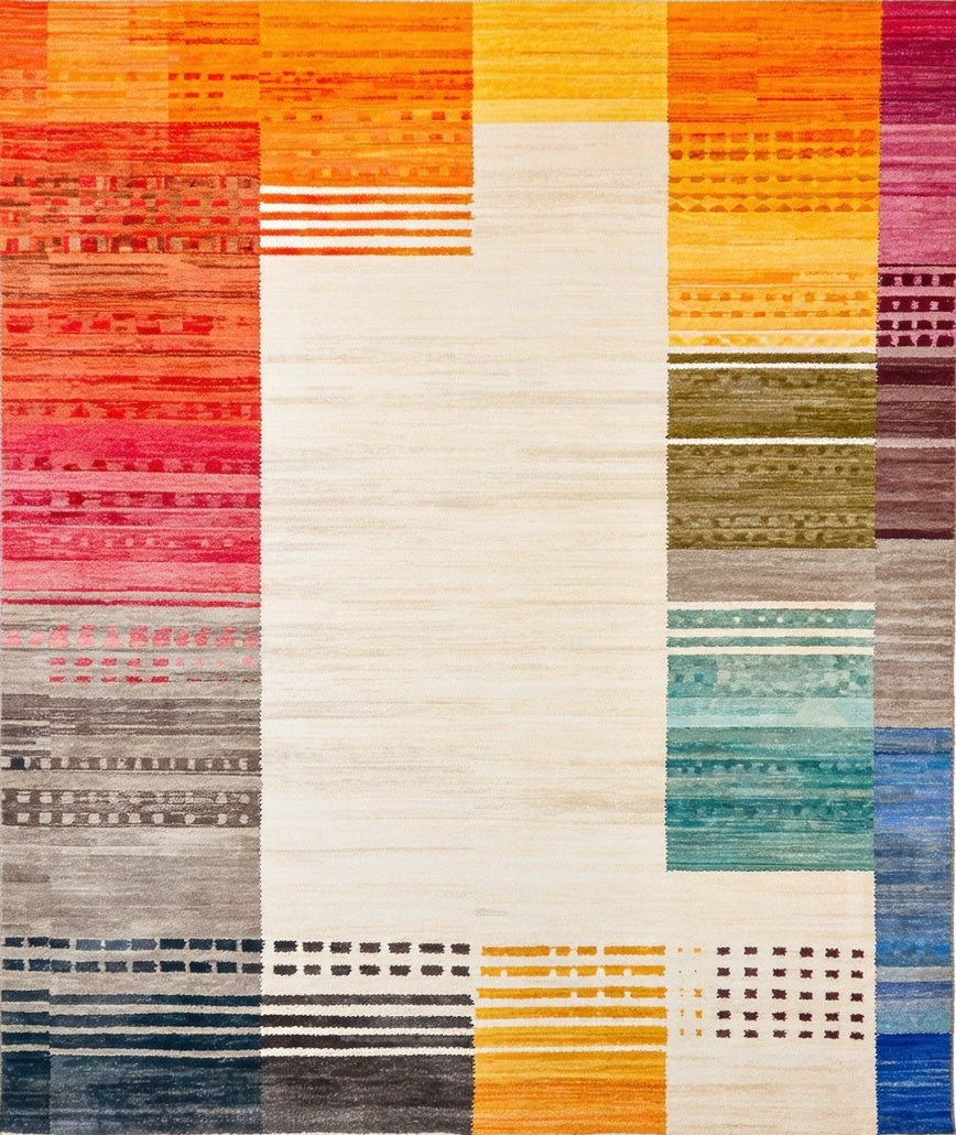 Boho Chic Area with Colorful Rainbow Geometric Shapes for Versatile Style(Orange)