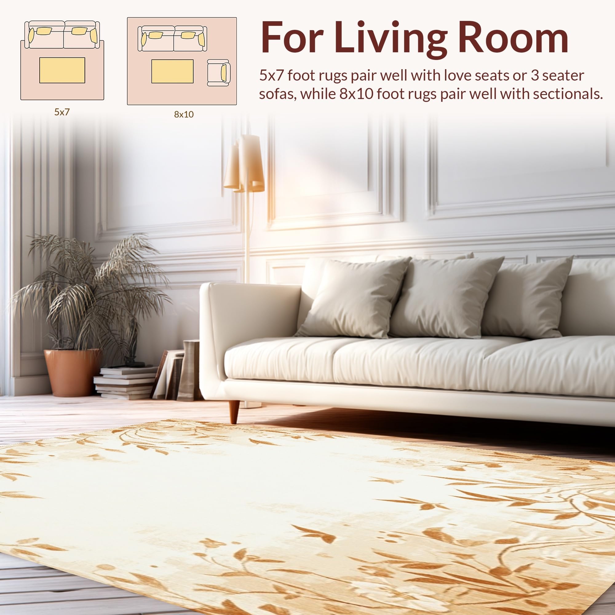 Ultra Soft Area Rug, Non Slip, Stain Resistant, Washable Area Rugs for Living Room, Bedroom, Boho Chic Entryway with Subtle Floral Swirls and Vintage Beige Palette(Beige) Overview: