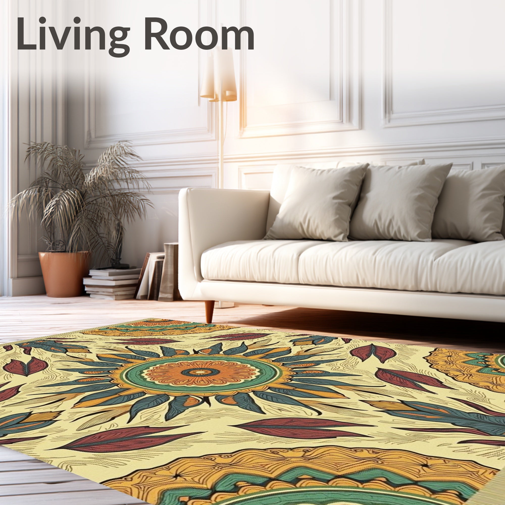 Ultra Soft Area Rug, Non Slip, Stain Resistant, Washable Area Rugs for Living Room, Bedroom, Boho Dreamcatcher Feather Medallion Tapestry(Beige) Overview: